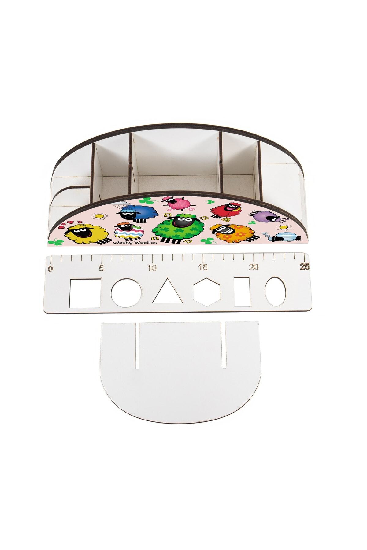 Ahşap Vip Mini Animals Gökkuşağı Cetvelli Masaüstü Kalemlik Organizer Montajlı Kutulu