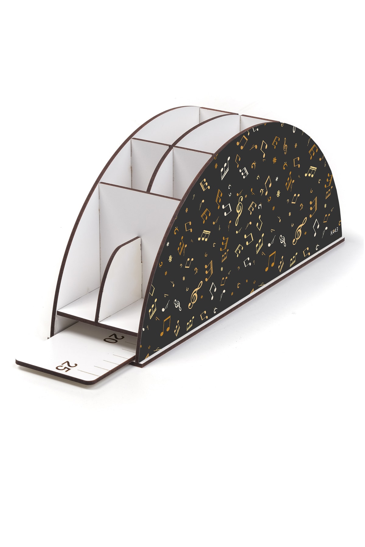 Ahşap Vip Notalar Model Gökkuşağı Cetvelli Masaüstü Kalemlik Organizer Montajlı Kutulu