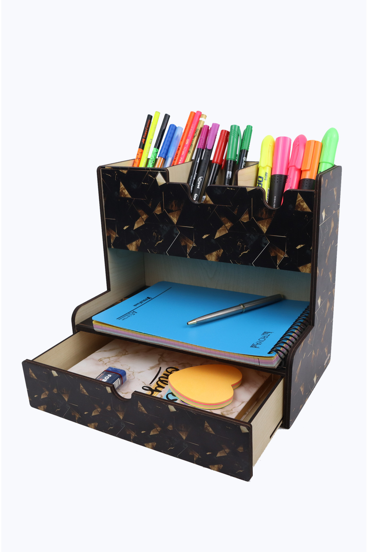 Ahşap Vi?p Notpa Masaüstü Kalemlik Organizer Montajlı Siyah