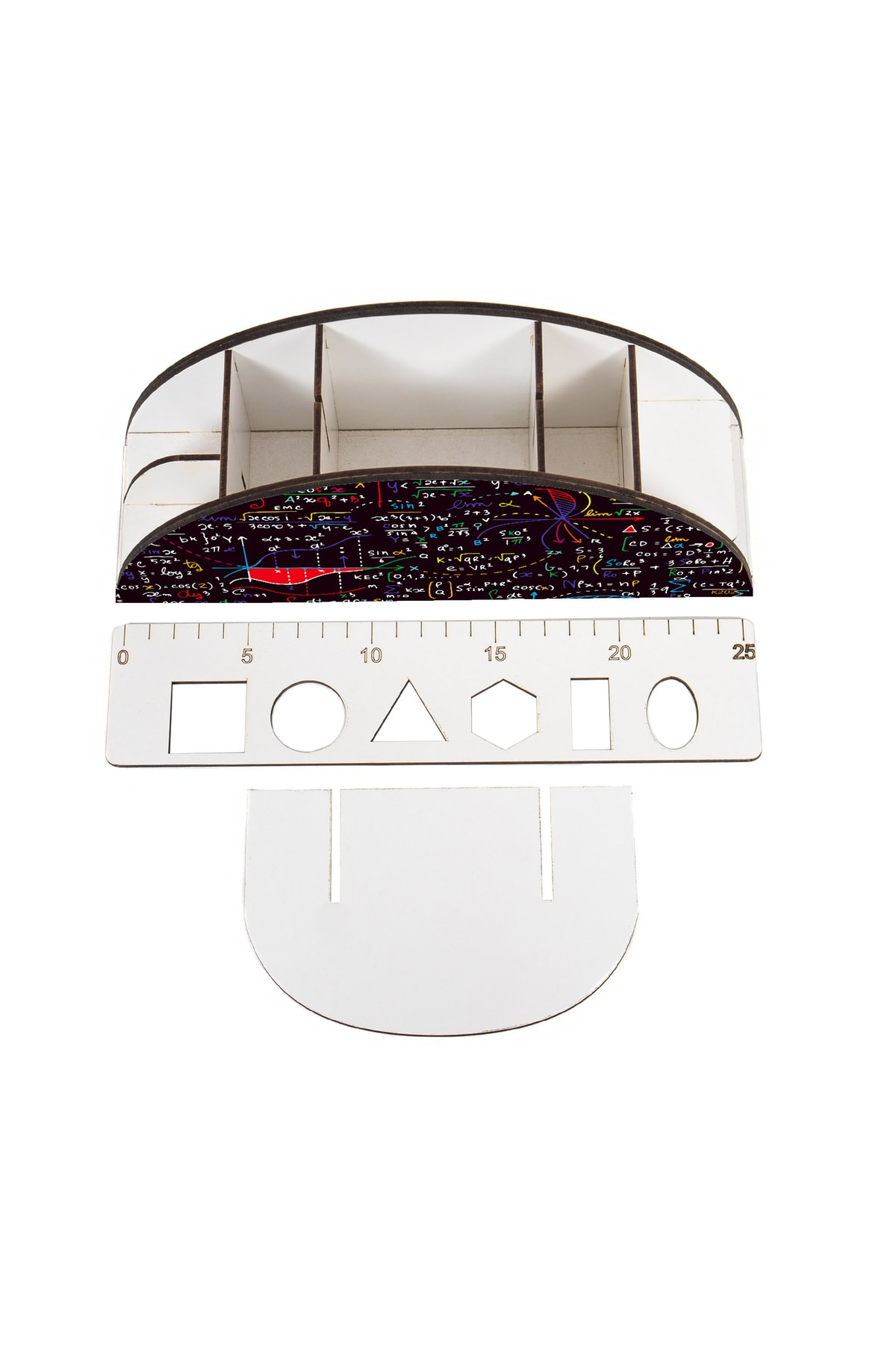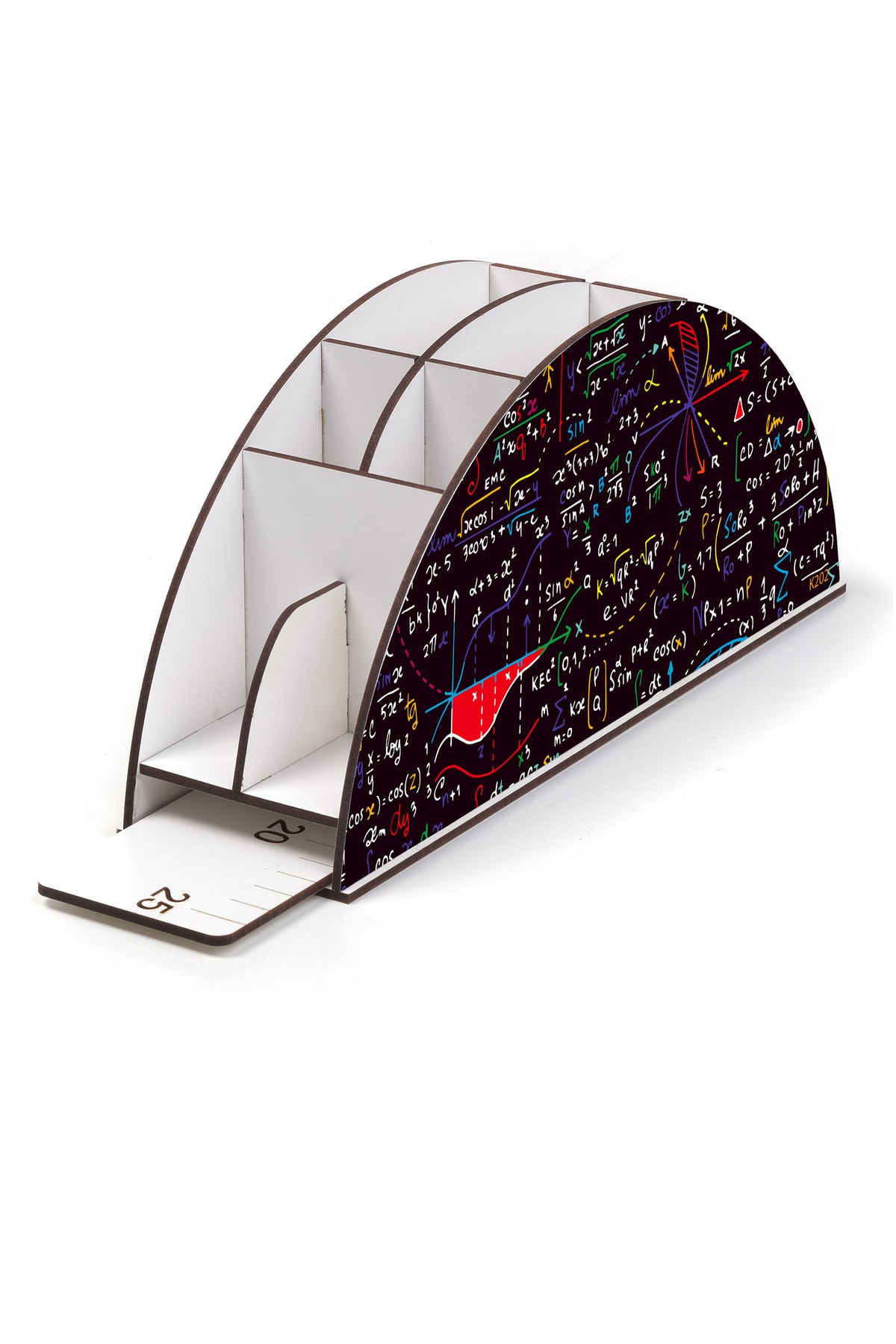 Ahşap Vip Öğrenci Seri Gökkuşağı Cetvelli Masaüstü Kalemlik Organizer Montajlı Kutulu