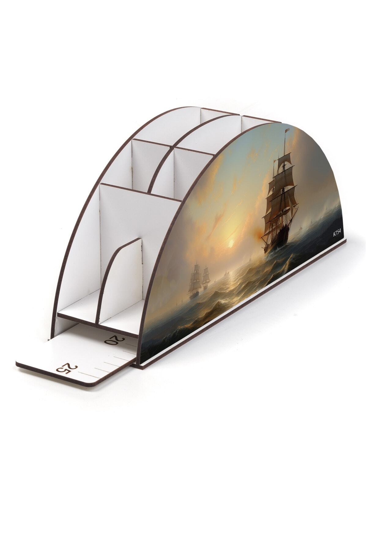 Ahşap VİP Okyanus Serisi Gökkuşağı Cetvelli Masaüstü Kalemlik Organizer Montajlı Kutulu