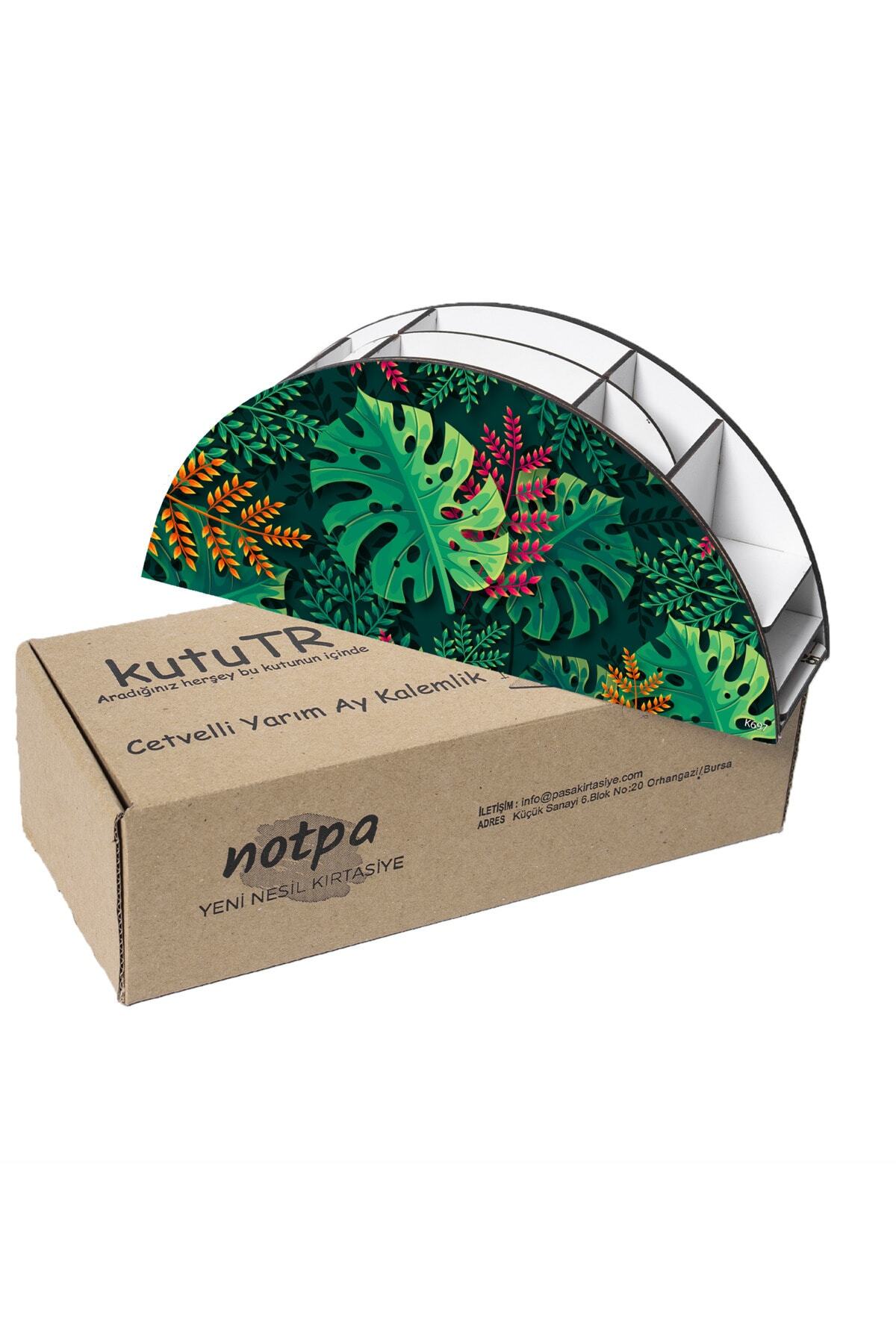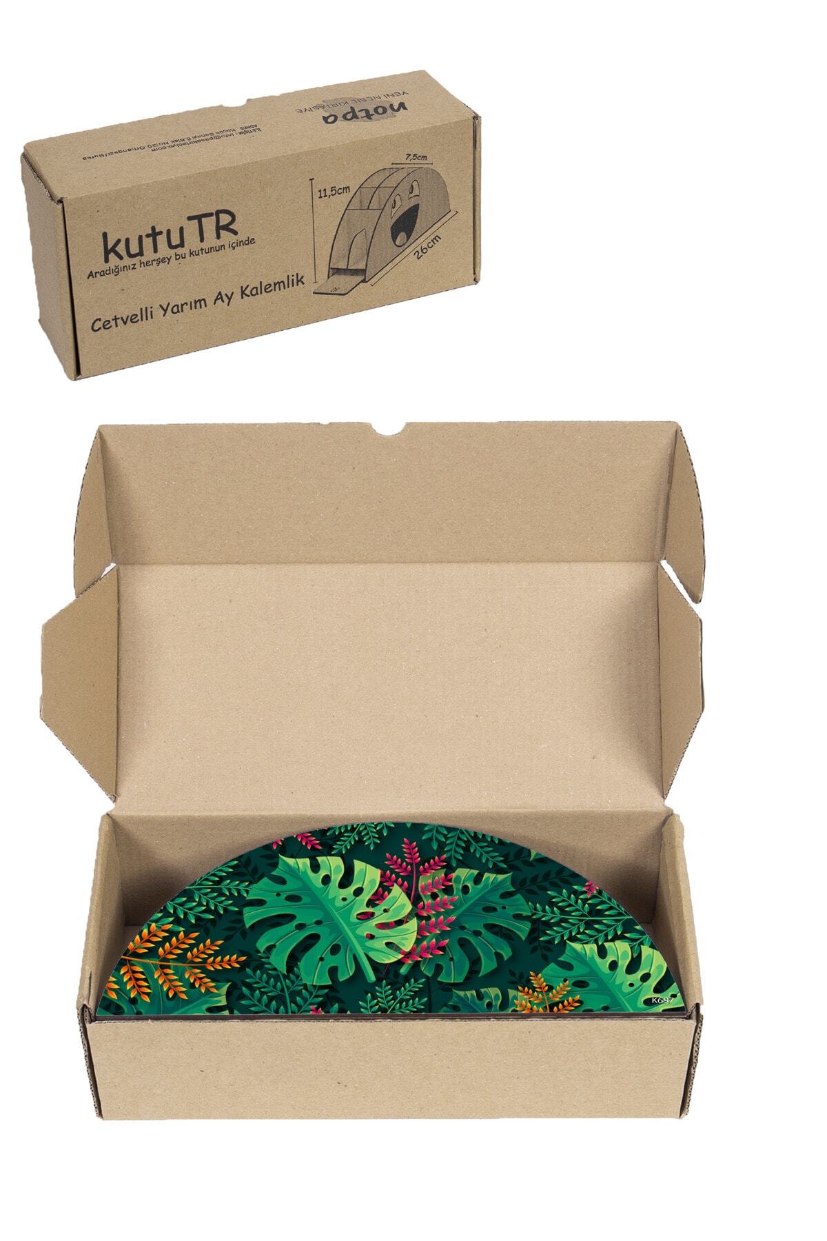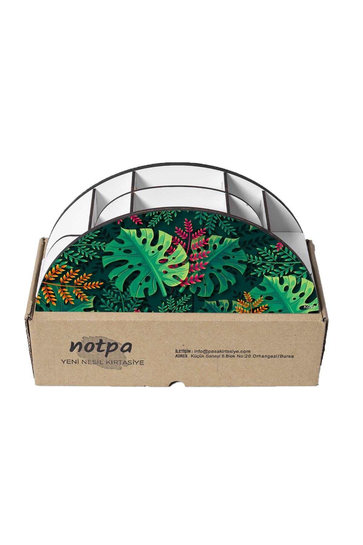 Ahşap VİP Orman ve Yapraklar Serisi Gökkuşağı Cetvelli Masaüstü Kalemlik Organizer Montajlı Kutulu