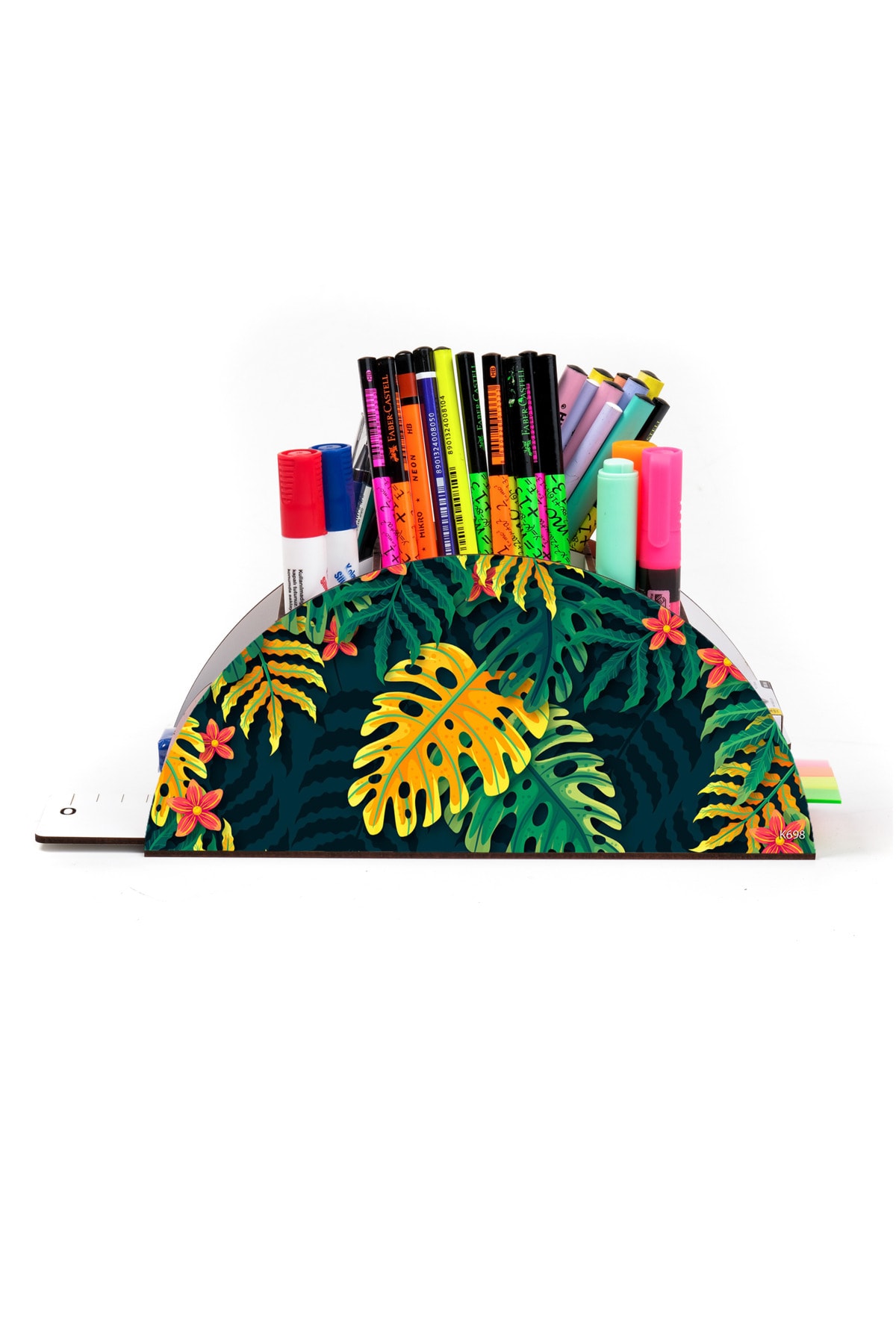 Ahşap VİP Orman ve Yapraklar Serisi Gökkuşağı Cetvelli Masaüstü Kalemlik Organizer Montajlı Kutulu