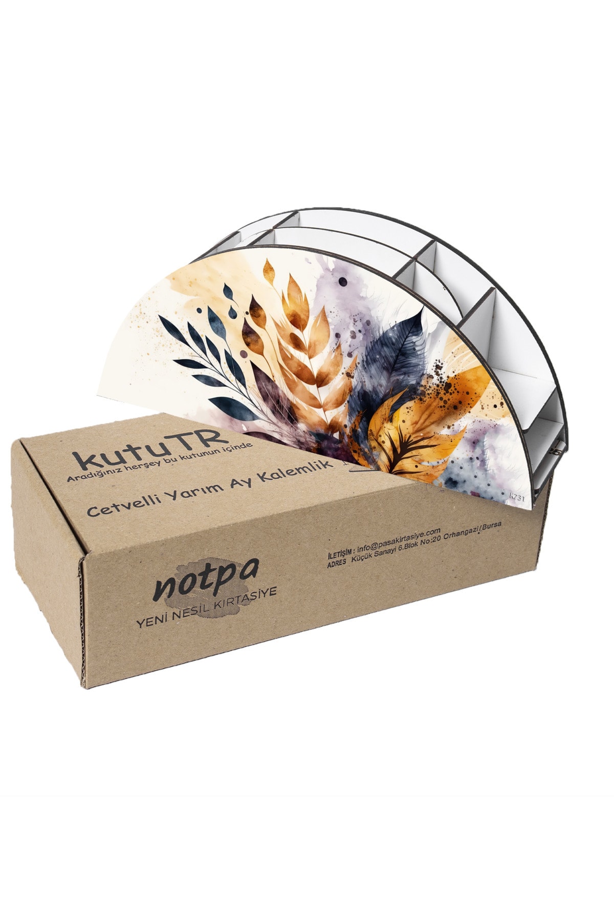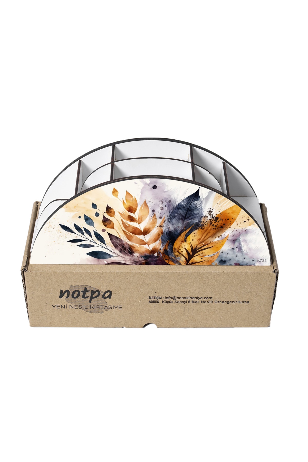Ahşap VİP Orman ve Yapraklar Serisi Gökkuşağı Cetvelli Masaüstü Kalemlik Organizer Montajlı Kutulu