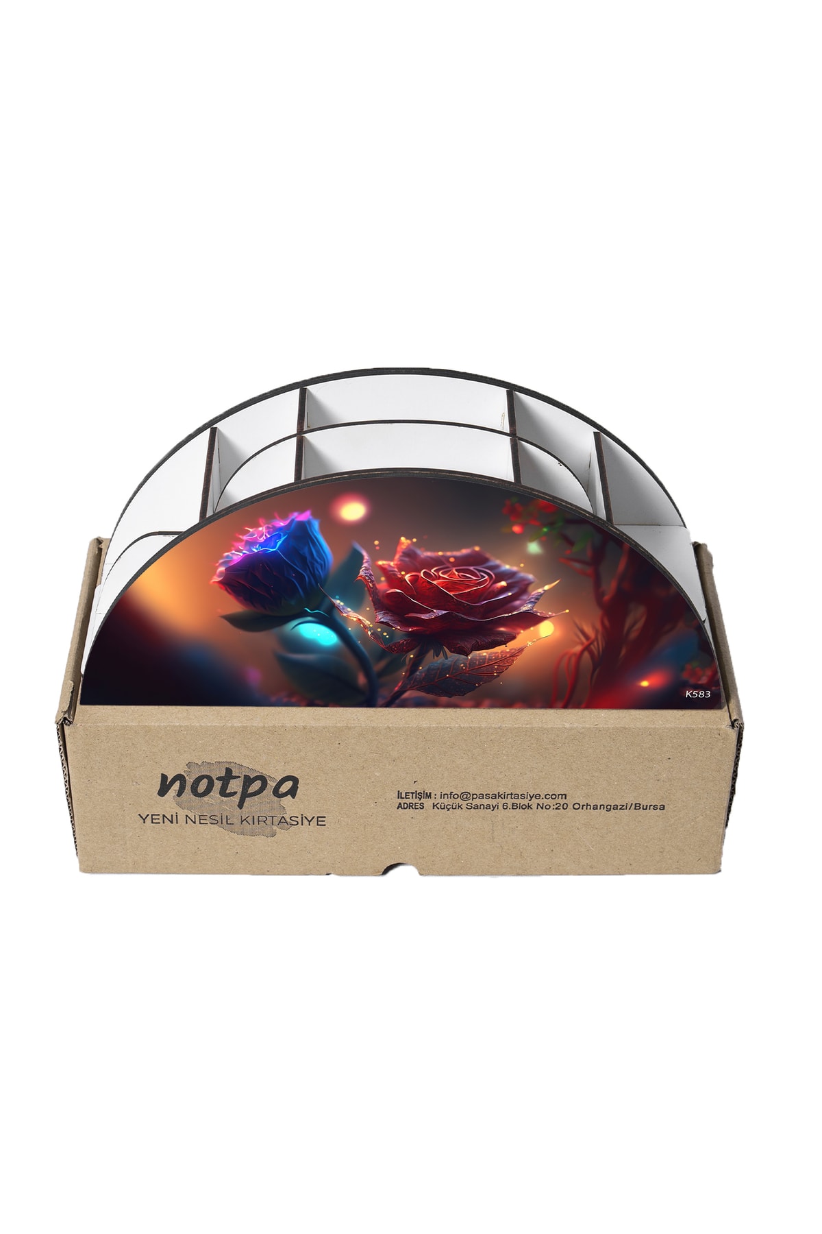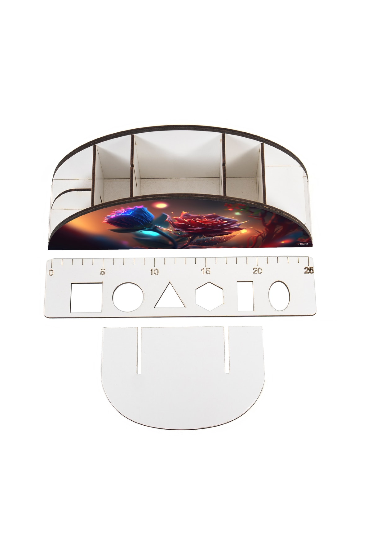 Ahşap Vip Özel Günler Serisi Gökkuşağı Cetvelli Masaüstü Kalemlik Organizer Montajlı Kutulu