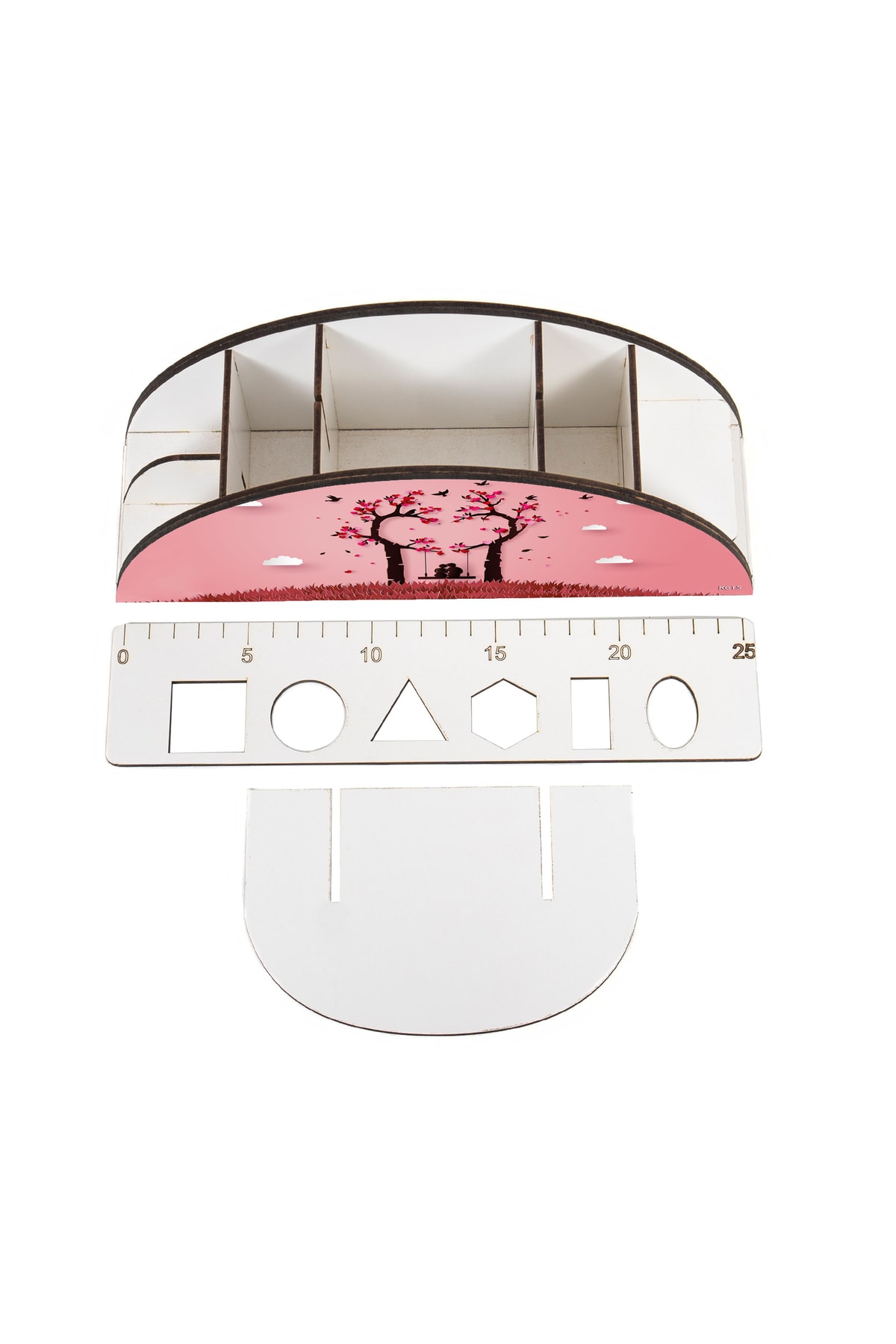 Ahşap Vip Özel Günler Serisi Gökkuşağı Cetvelli Masaüstü Kalemlik Organizer Montajlı Kutulu