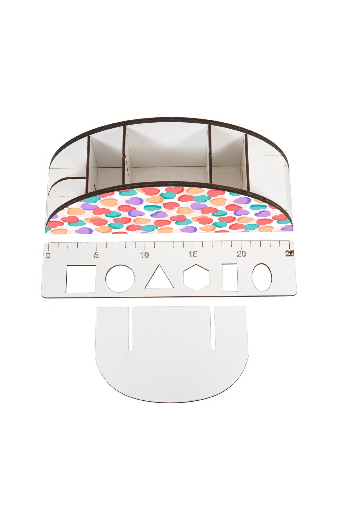 Ahşap Vip Özel Günler Serisi Gökkuşağı Cetvelli Masaüstü Kalemlik Organizer Montajlı Kutulu
