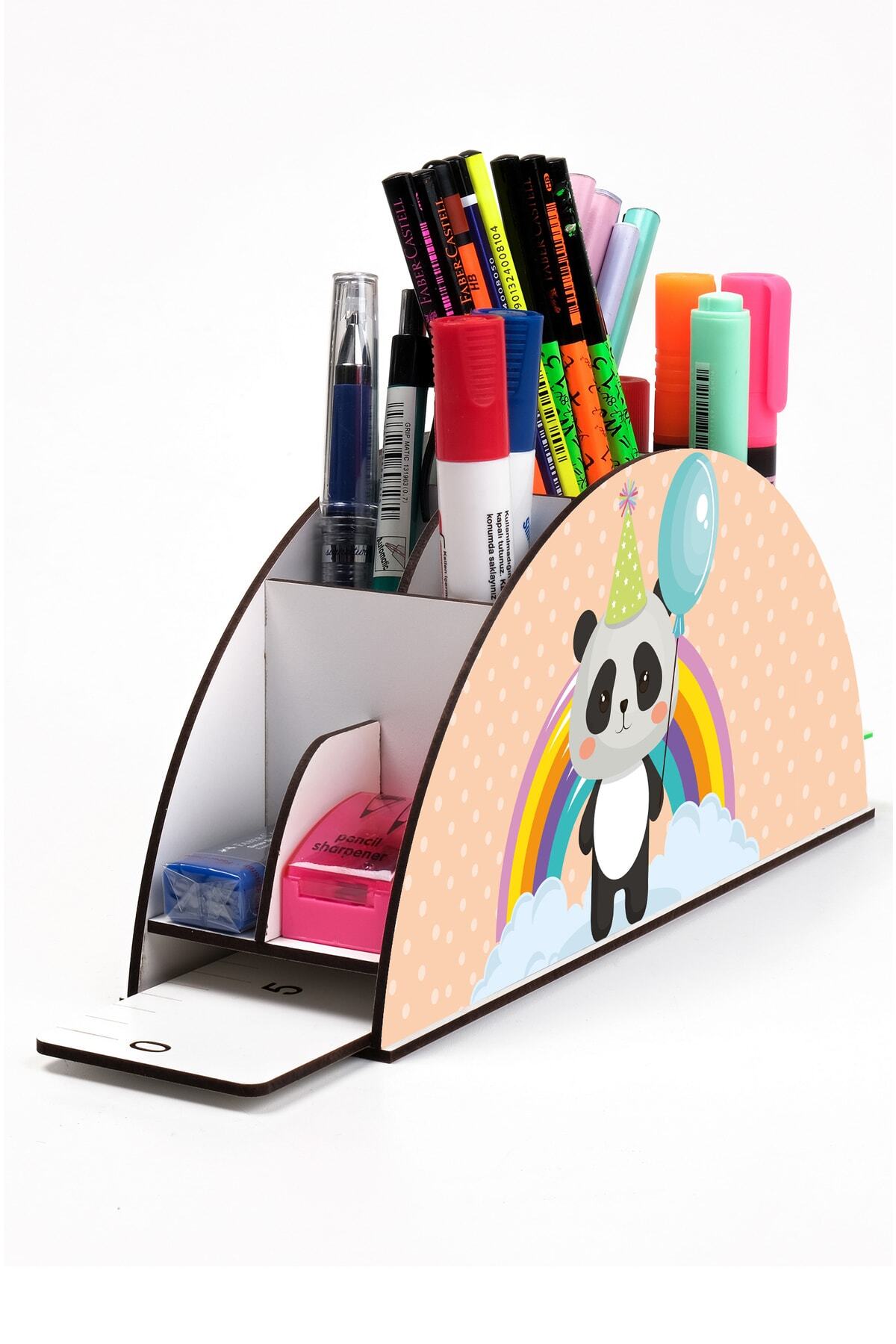 Ahşap Vip Panda Gökkuşağı Cetvelli Masaüstü Kalemlik Çocuklar Için Organizer Vip117