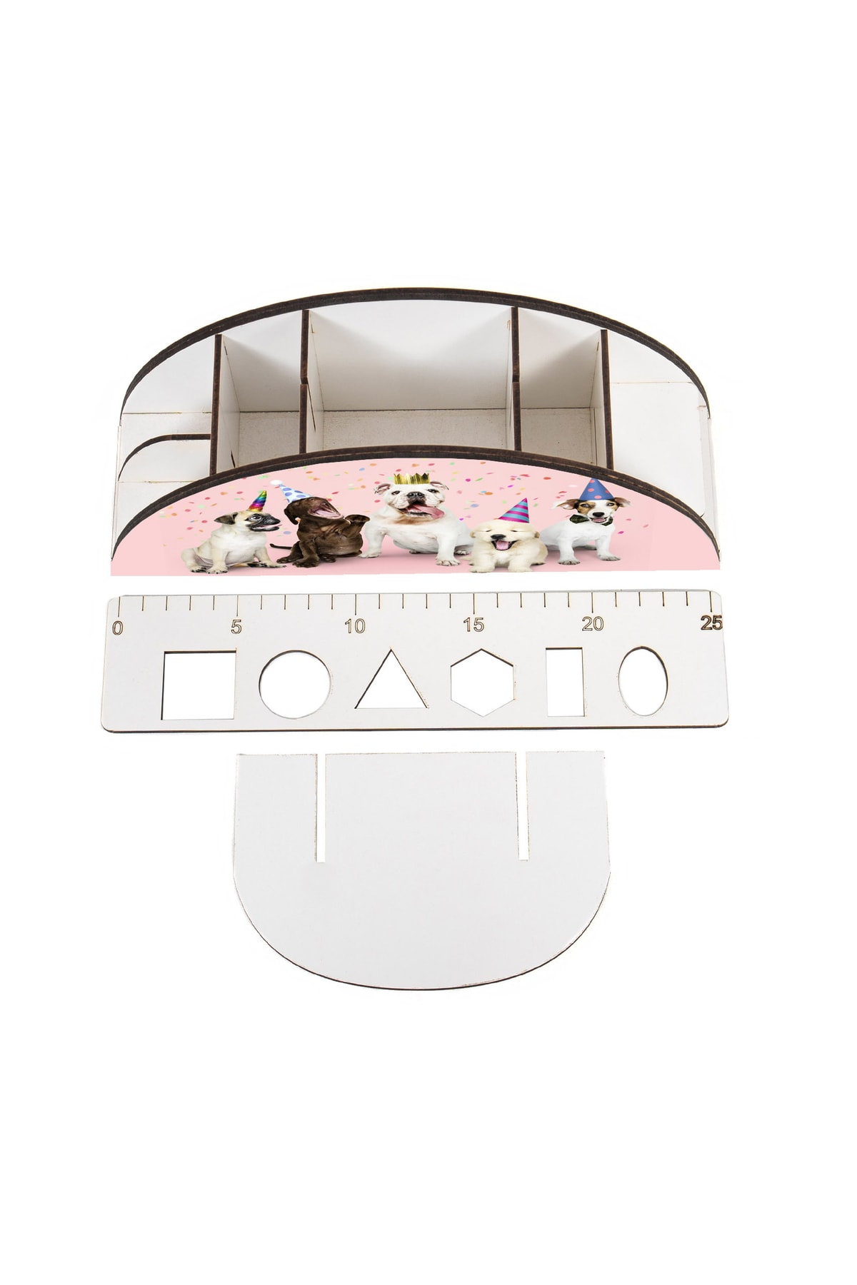 Ahşap Vip Partici Köpekler Gökkuşağı Cetvelli Masaüstü Kalemlik Organizer Vip130