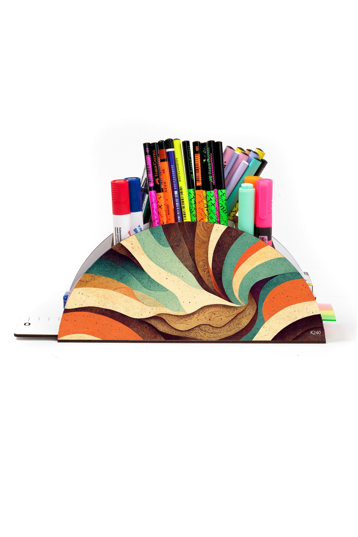 Ahşap Vip Pattern Seri Gökkuşağı Cetvelli Masaüstü Kalemlik Organizer Montajlı Kutulu
