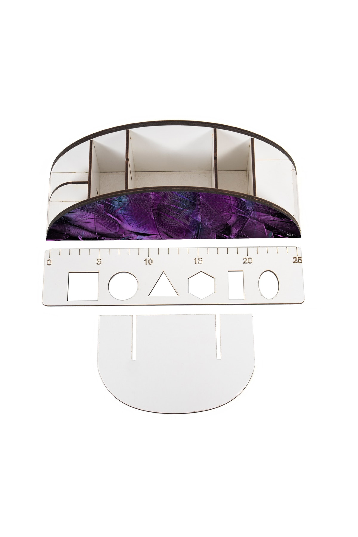 Ahşap Vip Pattern Seri Gökkuşağı Cetvelli Masaüstü Kalemlik Organizer Montajlı Kutulu