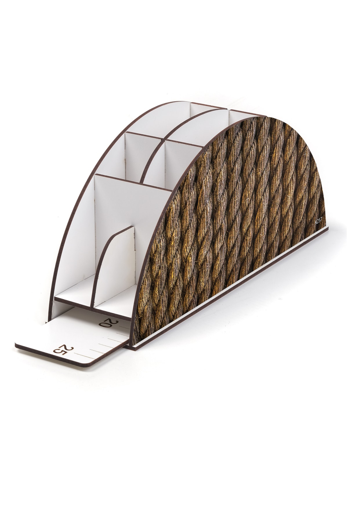 Ahşap Vip Pattern Seri Gökkuşağı Cetvelli Masaüstü Kalemlik Organizer Montajlı Kutulu