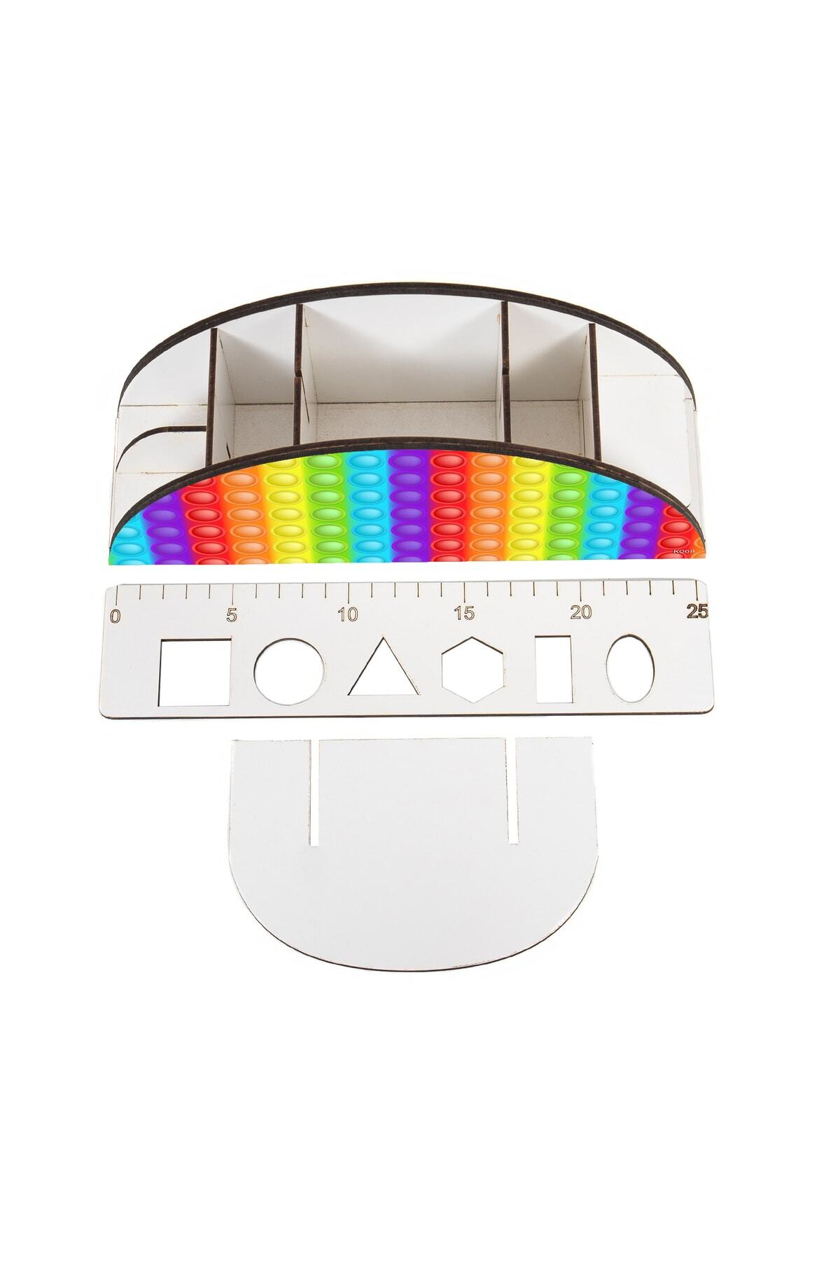 Ahşap Vip Popit Serisi Gökkuşağı Cetvelli Masaüstü Kalemlik Çocuklar Için Organizer Montajlı Kutulu