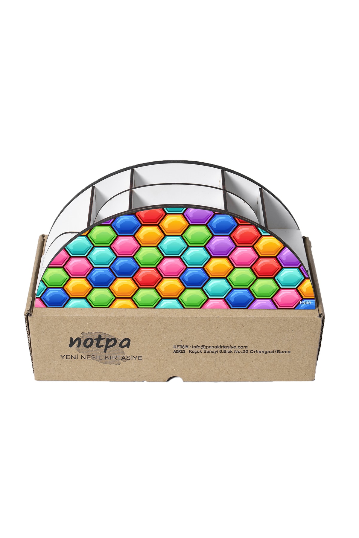 Ahşap Vip Popitler Model Gökkuşağı Cetvelli Masaüstü Kalemlik Organizer Montajlı Kutulu