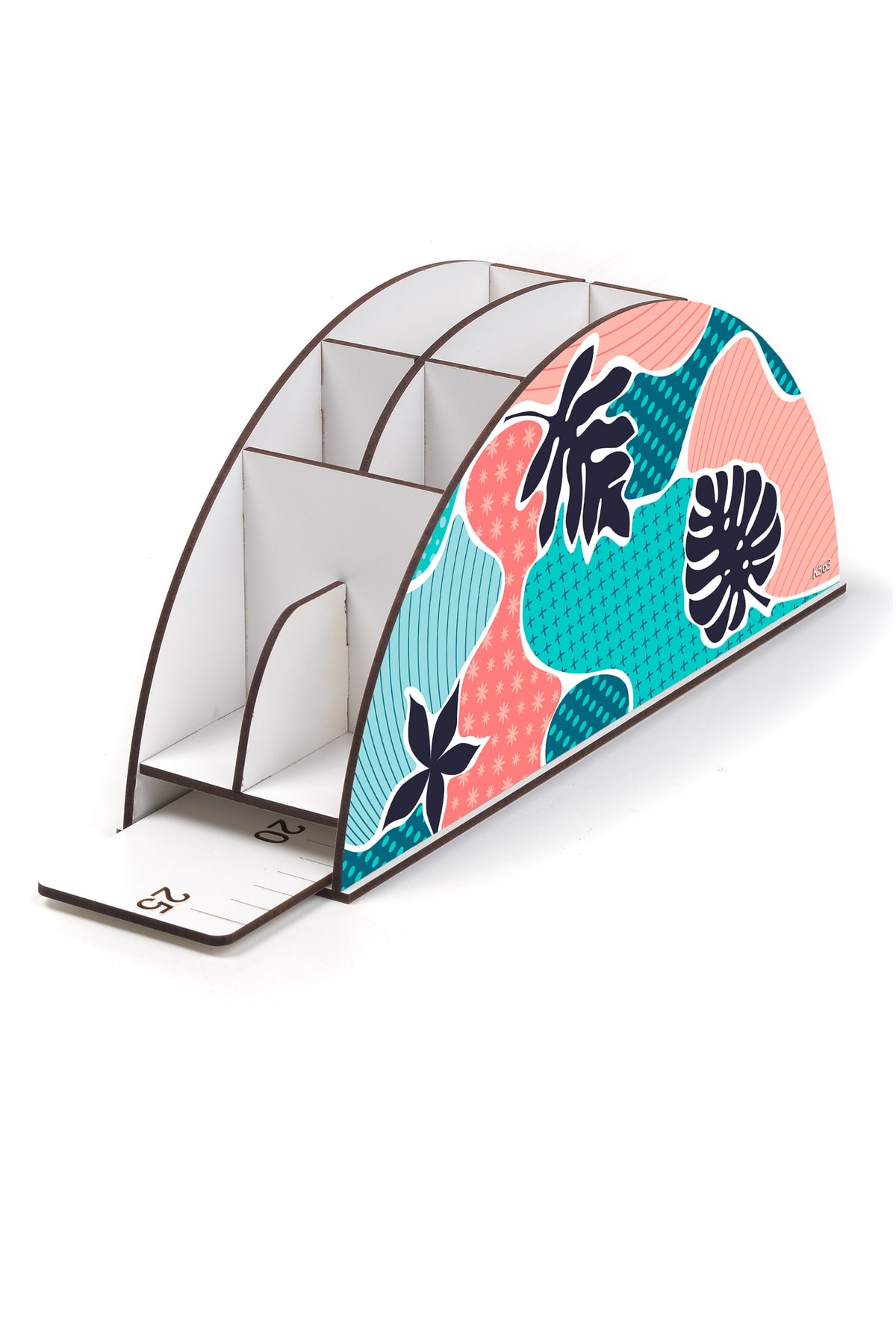 Ahşap Vip Rengarenk Modeller Gökkuşağı Cetvelli Masaüstü Kalemlik Organizer Montajlı Kutulu