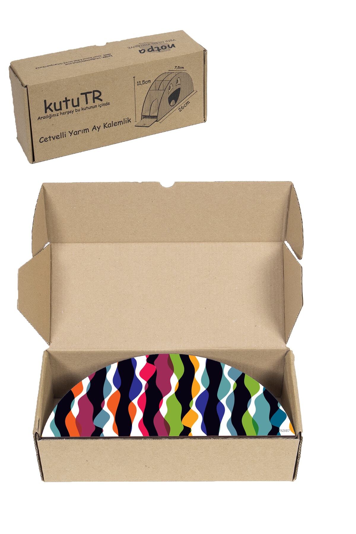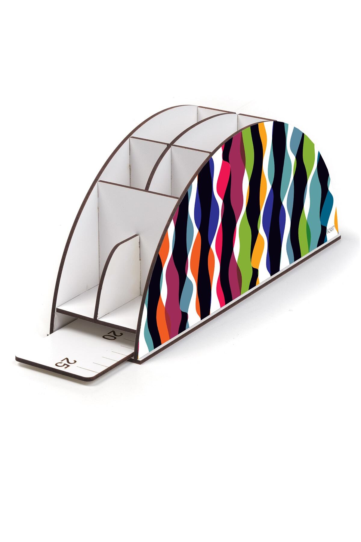 Ahşap Vip Rengarenk Modeller Gökkuşağı Cetvelli Masaüstü Kalemlik Organizer Montajlı Kutulu