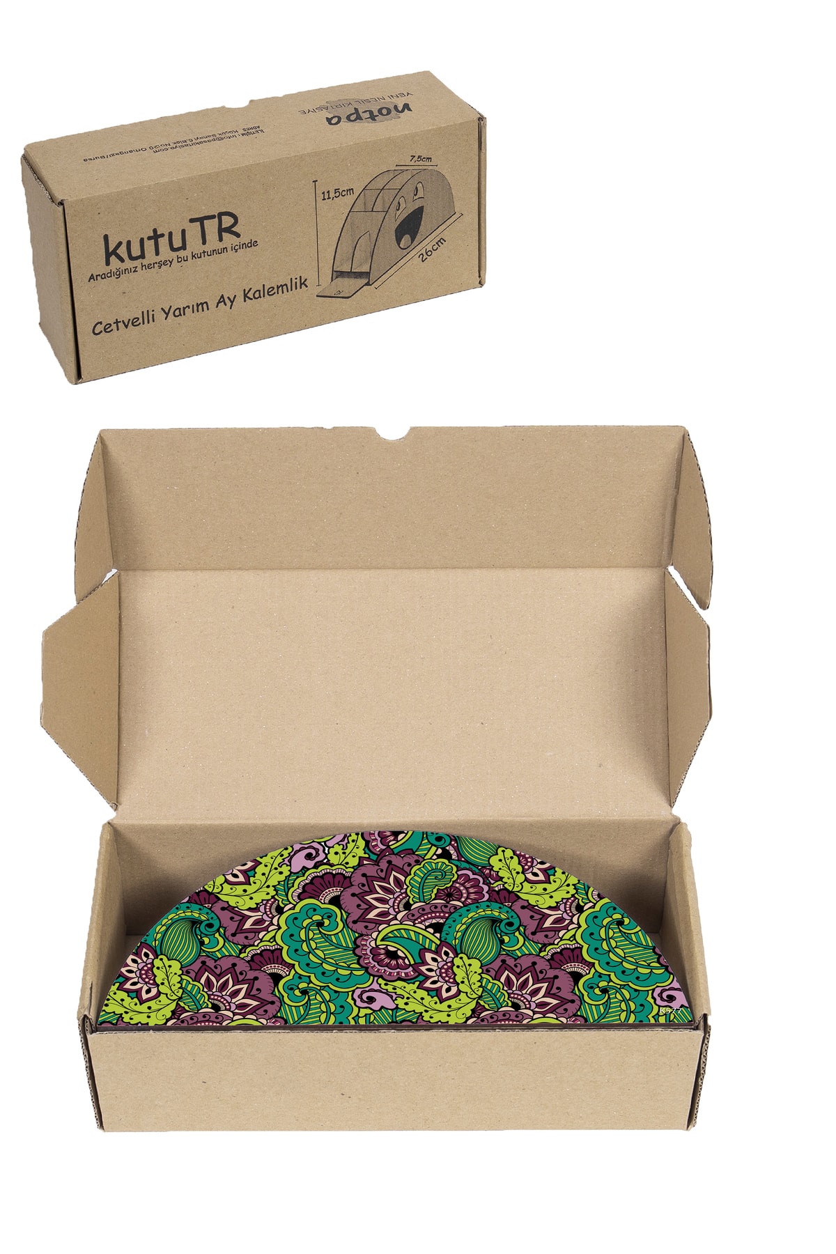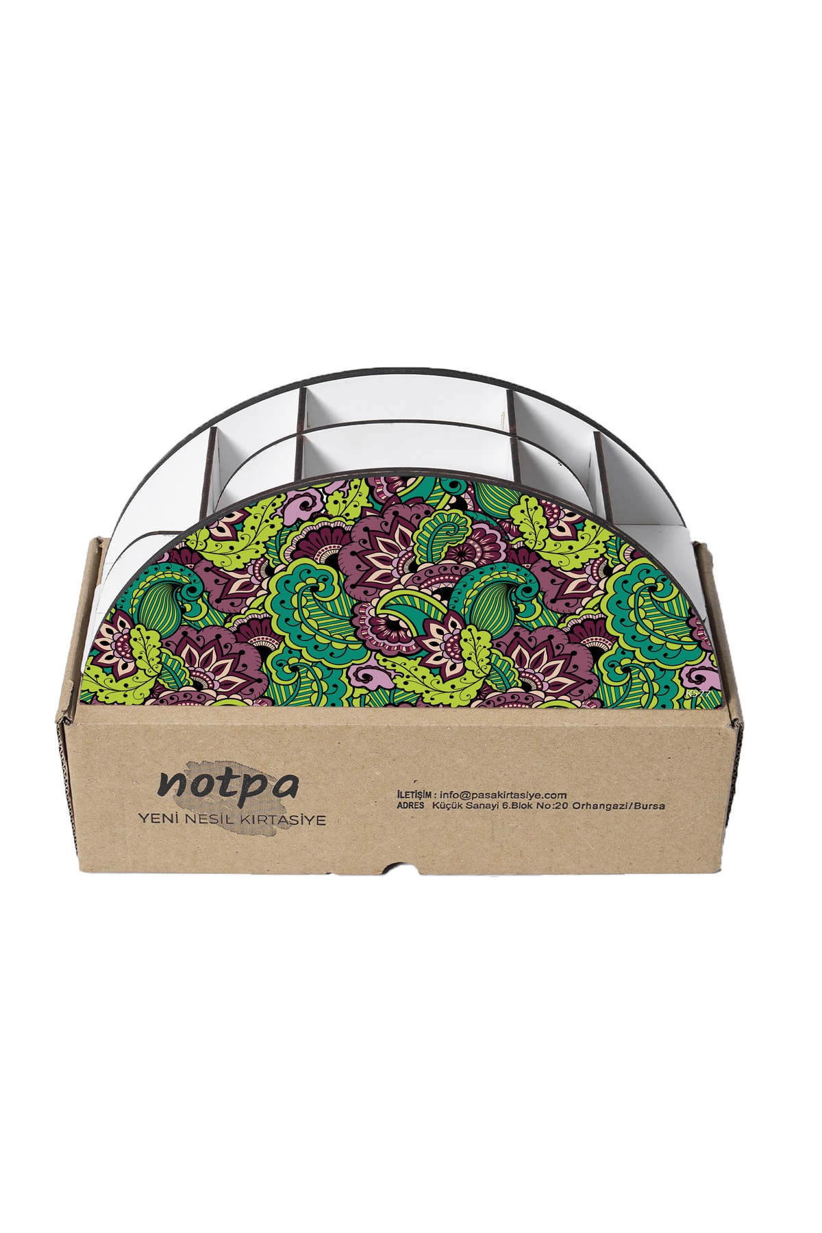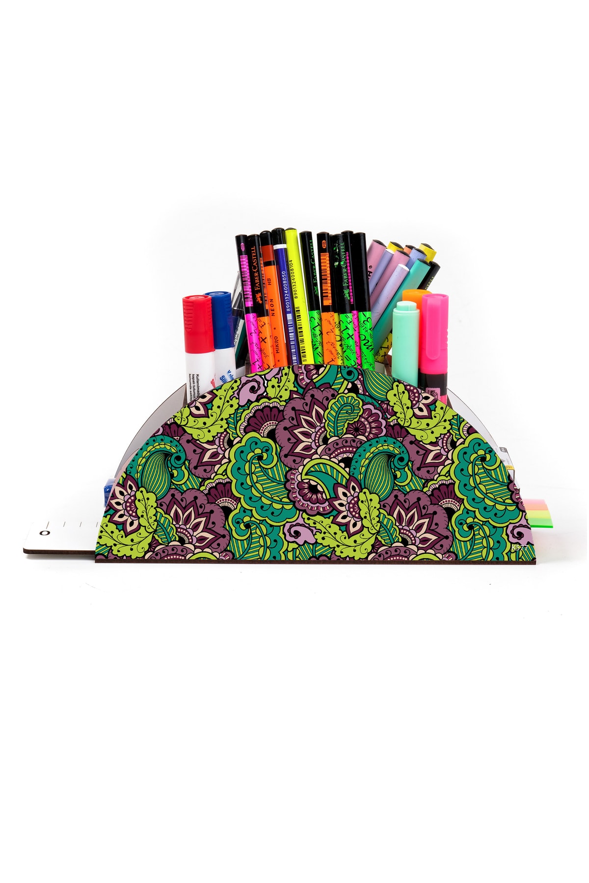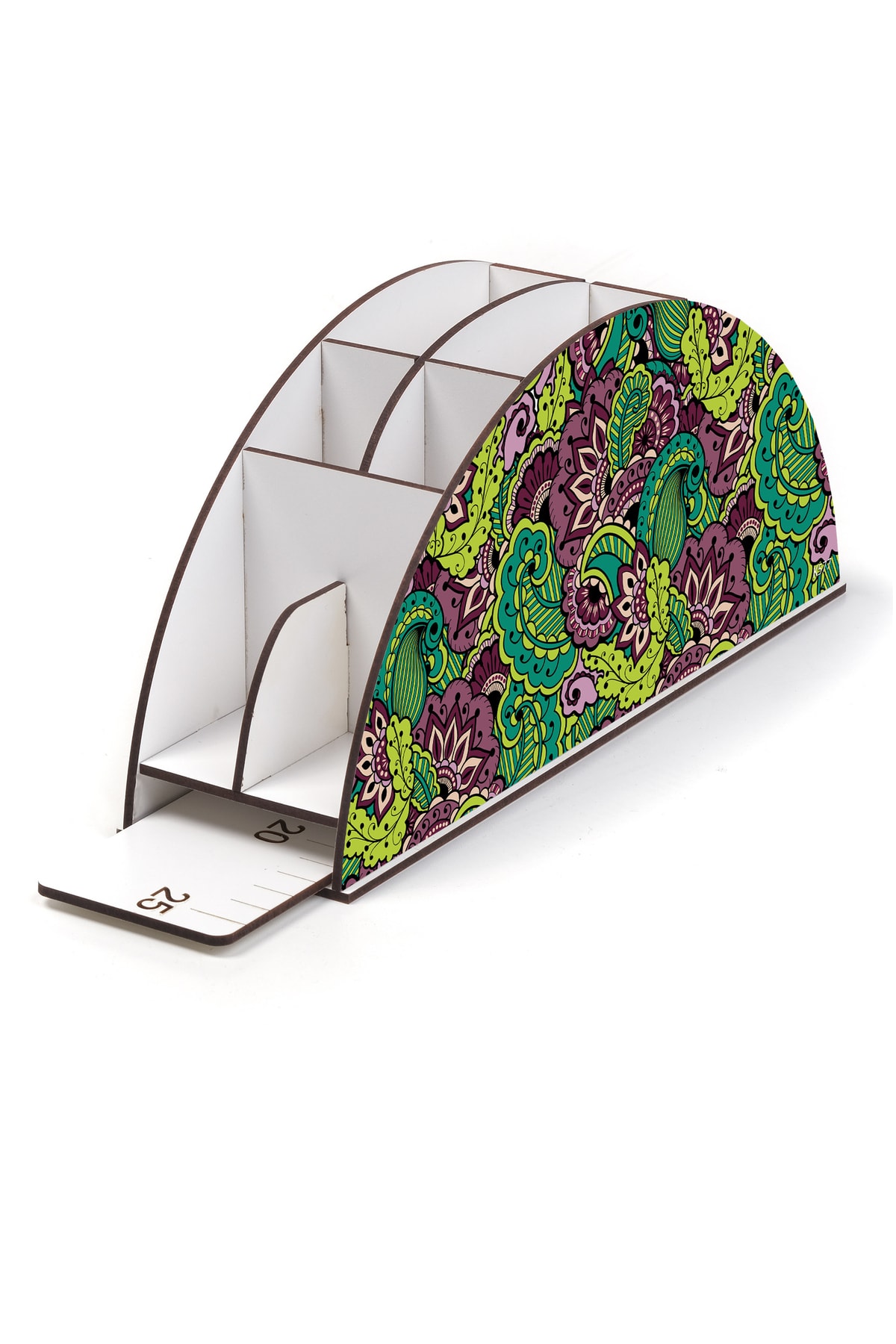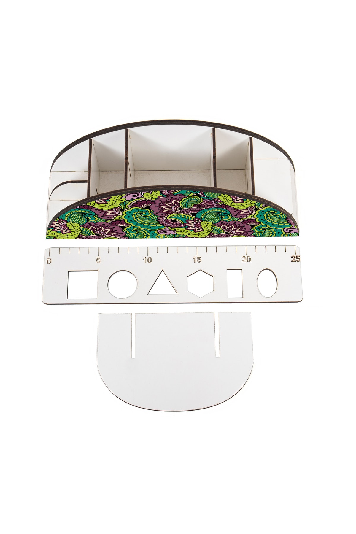 Ahşap Vip Renkli Çiçekler Gökkuşağı Cetvelli Masaüstü Kalemlik Organizer Montajlı Kutulu