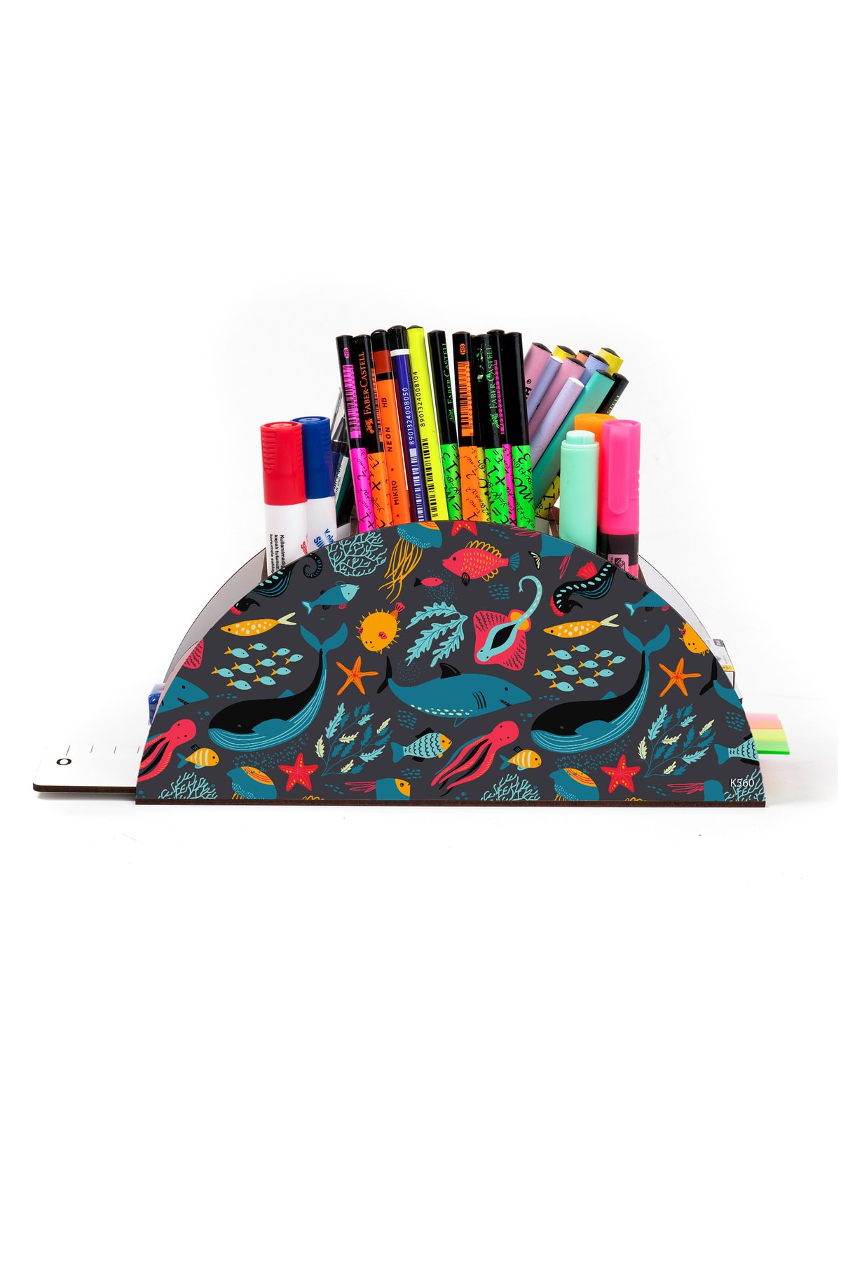 Ahşap Vip Renkli Hayvanlar Gökkuşağı Cetvelli Masaüstü Kalemlik Organizer Montajlı Kutulu