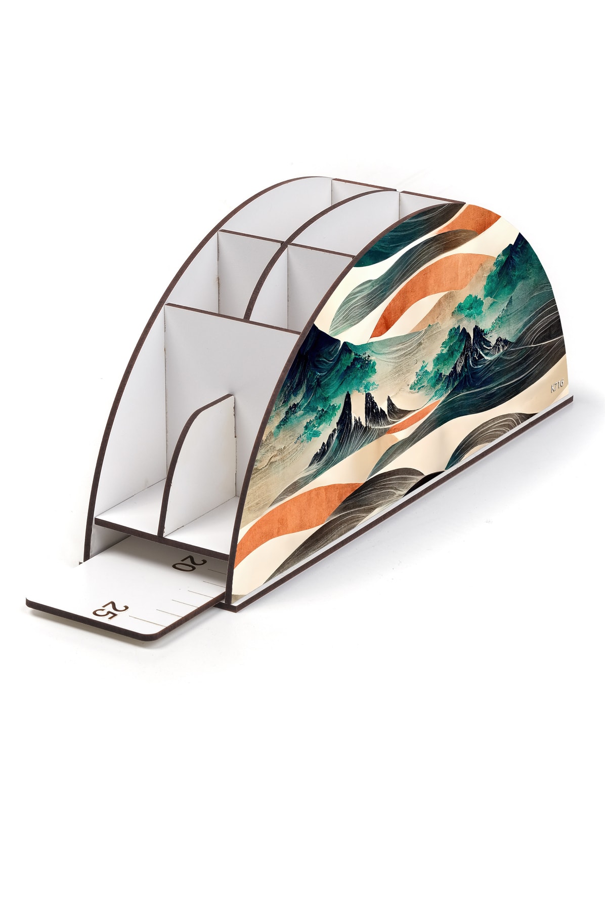 Ahşap Vip Retro Serisi Gökkuşağı Cetvelli Masaüstü Kalemlik Organizer Montajlı Kutulu