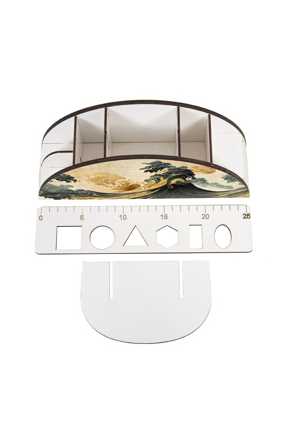 Ahşap Vip Retro Serisi Gökkuşağı Cetvelli Masaüstü Kalemlik Organizer Montajlı Kutulu