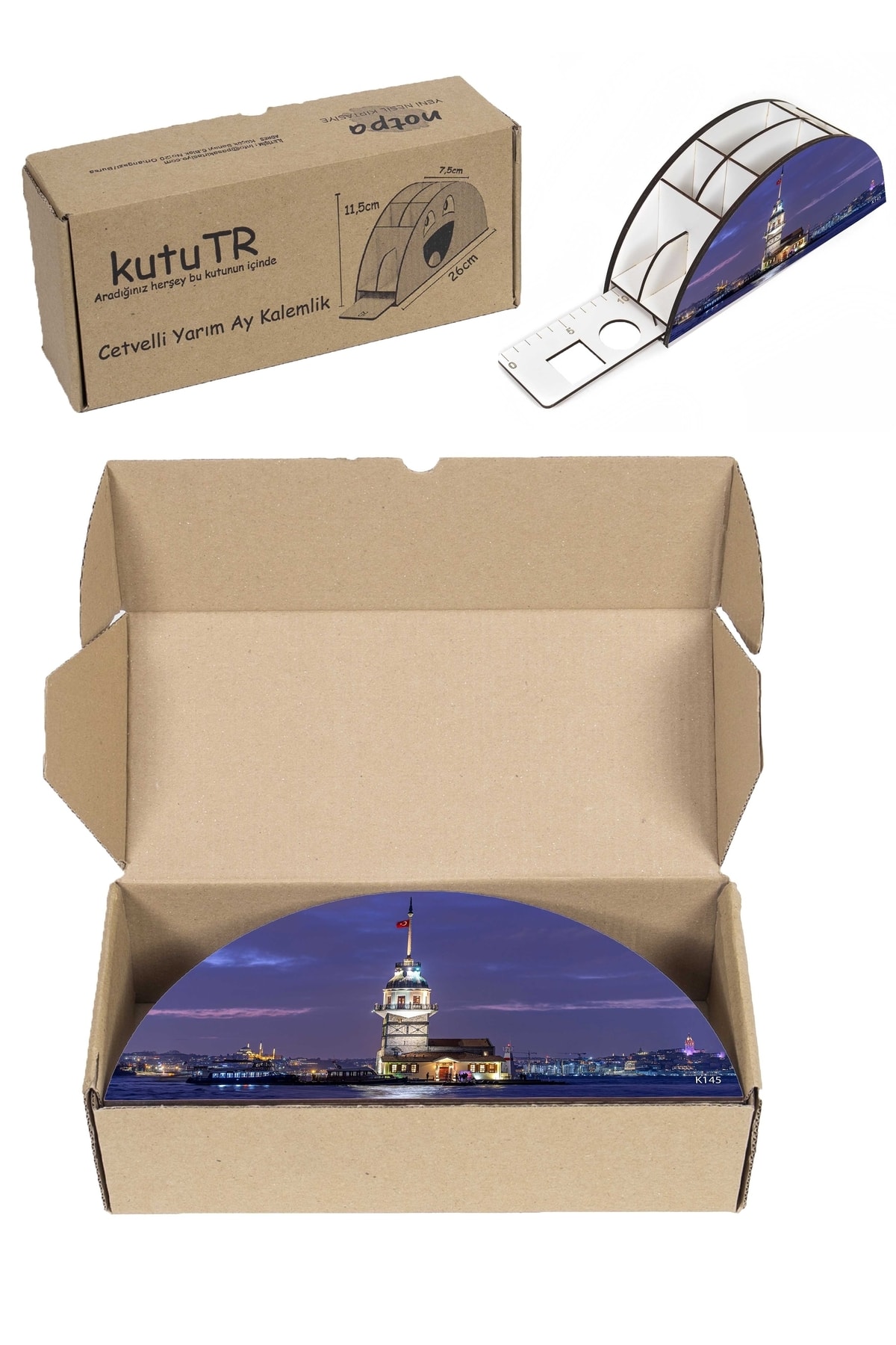 Ahşap Vip Şehir Serisi Gökkuşağı Cetvelli Masaüstü Kalemlik Organizer Montajlı Kutulu