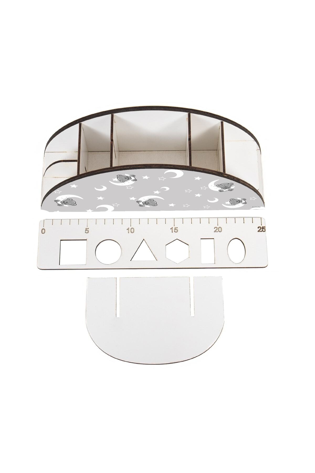 Ahşap Vip Şirin Hayvanlar Model Gökkuşağı Cetvelli Masaüstü Kalemlik Organizer Montajlı Kutulu
