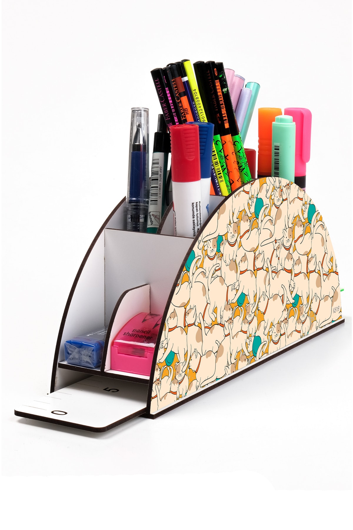 Ahşap Vip Şirin Hayvanlar Model Gökkuşağı Cetvelli Masaüstü Kalemlik Organizer Montajlı Kutulu