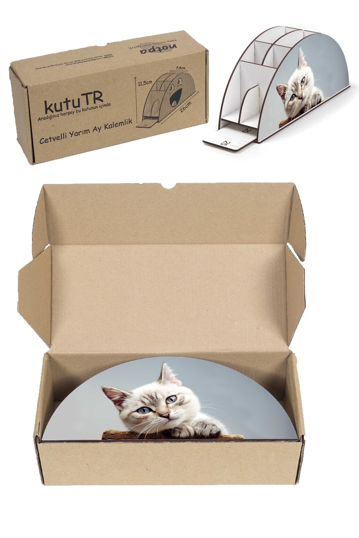Ahşap Vip Şirin Kedi Gökkuşağı Cetvelli Masaüstü Kalemlik Organizer Vip127