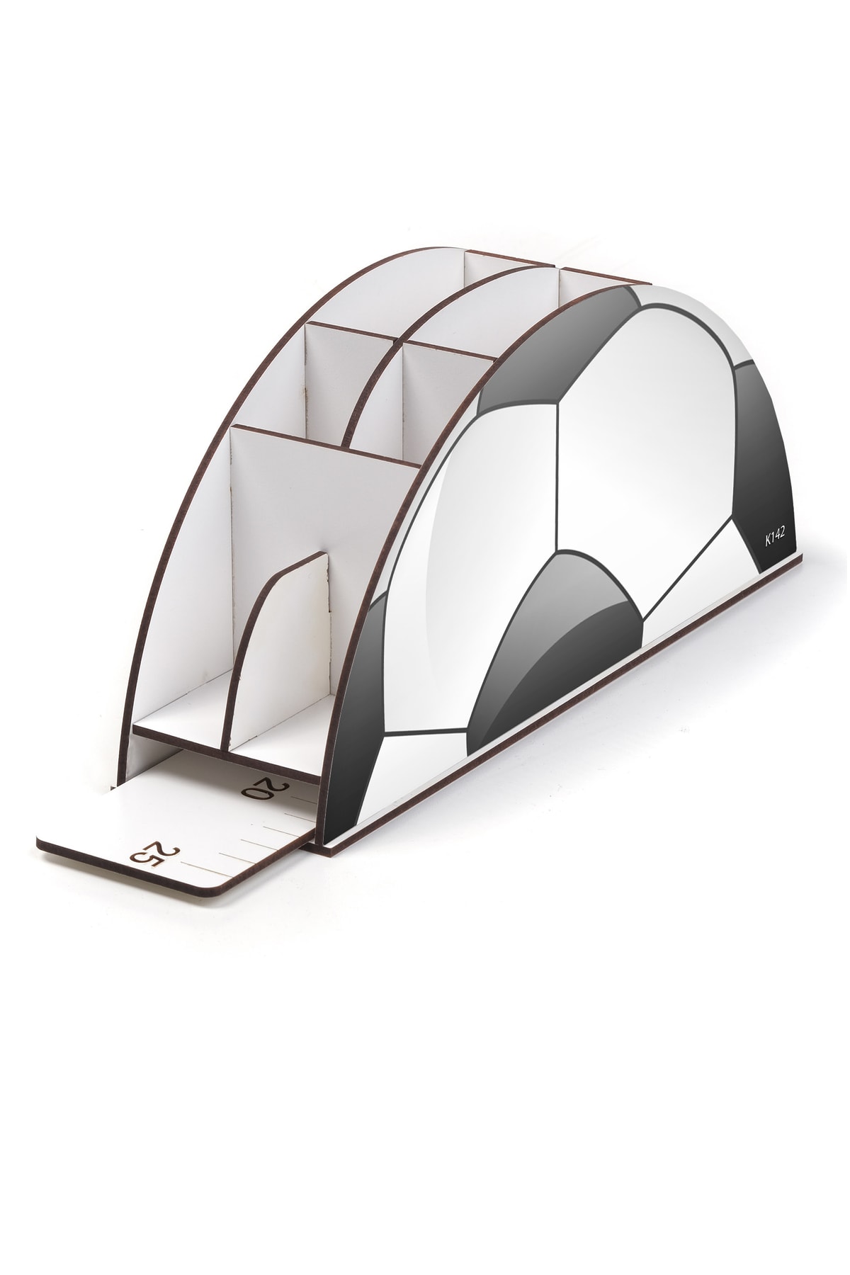 Ahşap Vip Spor Serisi Gökkuşağı Cetvelli Masaüstü Kalemlik Organizer Montajlı Kutulu