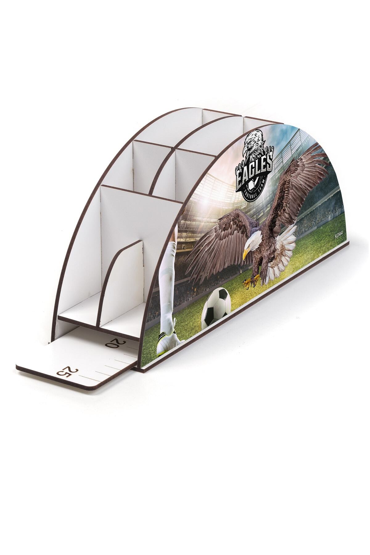 Ahşap Vip Spor Serisi Gökkuşağı Cetvelli Masaüstü Kalemlik Organizer Montajlı Kutulu