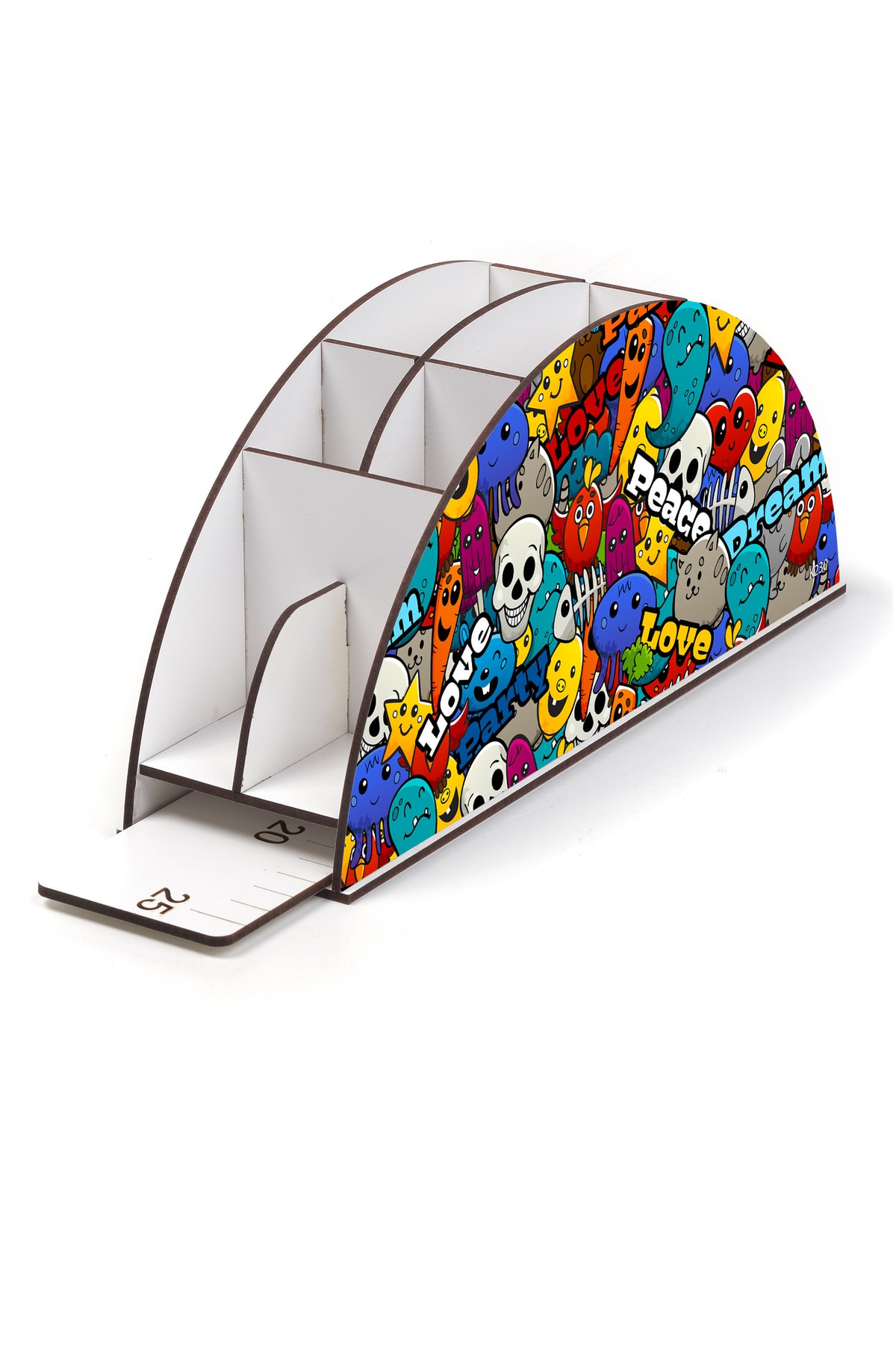 Ahşap Vip Student Seri Gökkuşağı Cetvelli Masaüstü Kalemlik Organizer Montajlı Kutulu