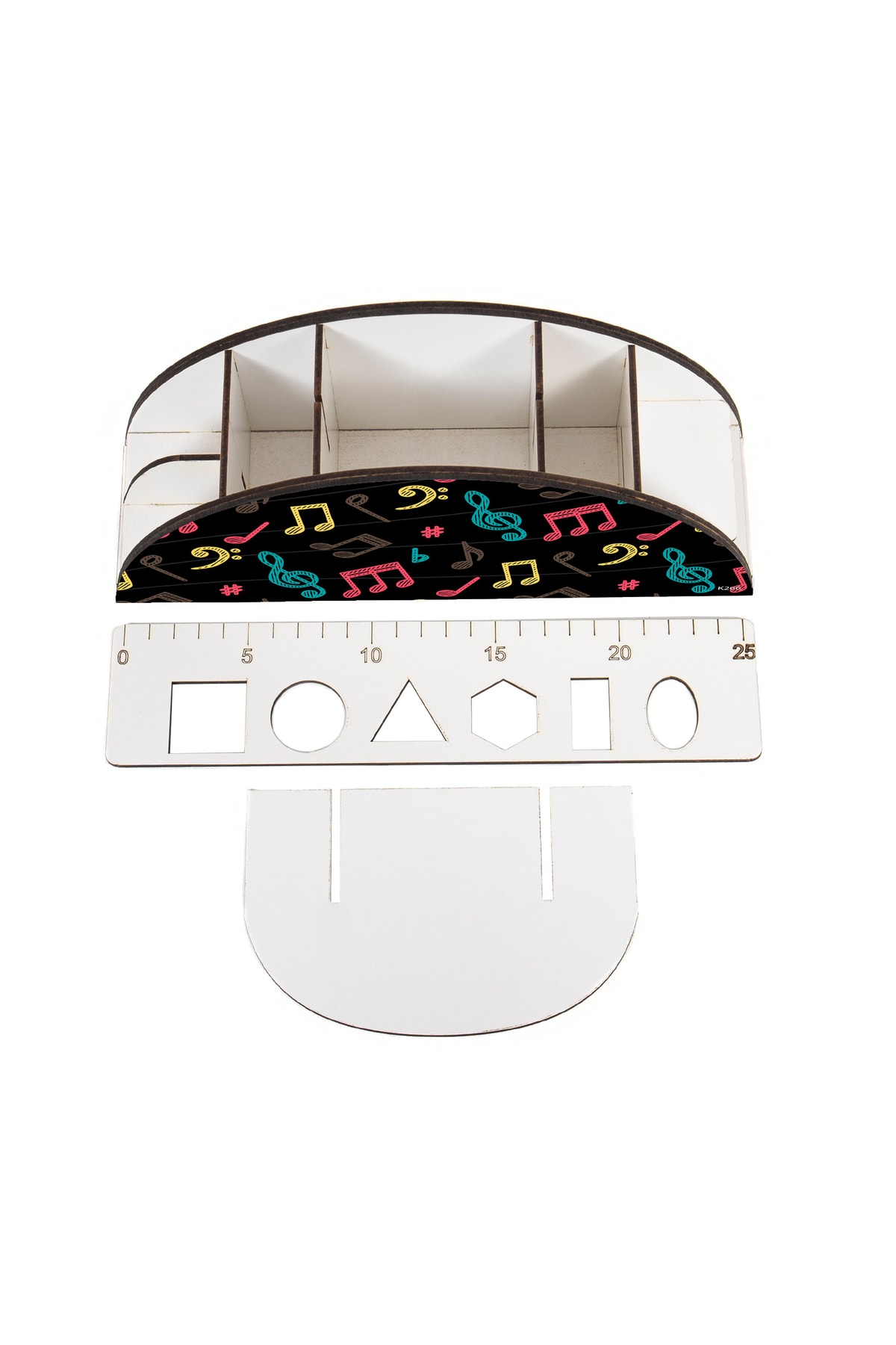 Ahşap Vip Student Seri Gökkuşağı Cetvelli Masaüstü Kalemlik Organizer Montajlı Kutulu