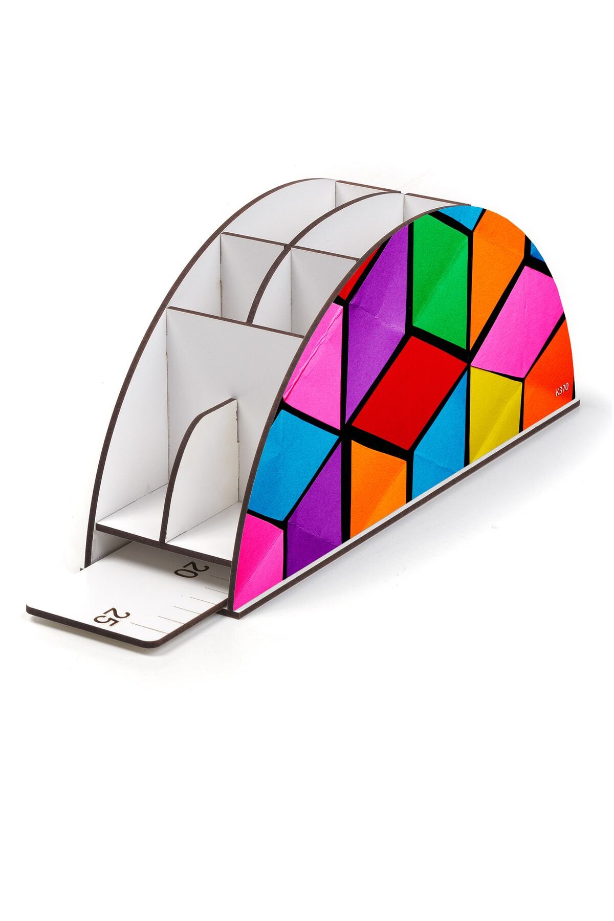 Ahşap Vip Student Seri Gökkuşağı Cetvelli Masaüstü Kalemlik Organizer Montajlı Kutulu