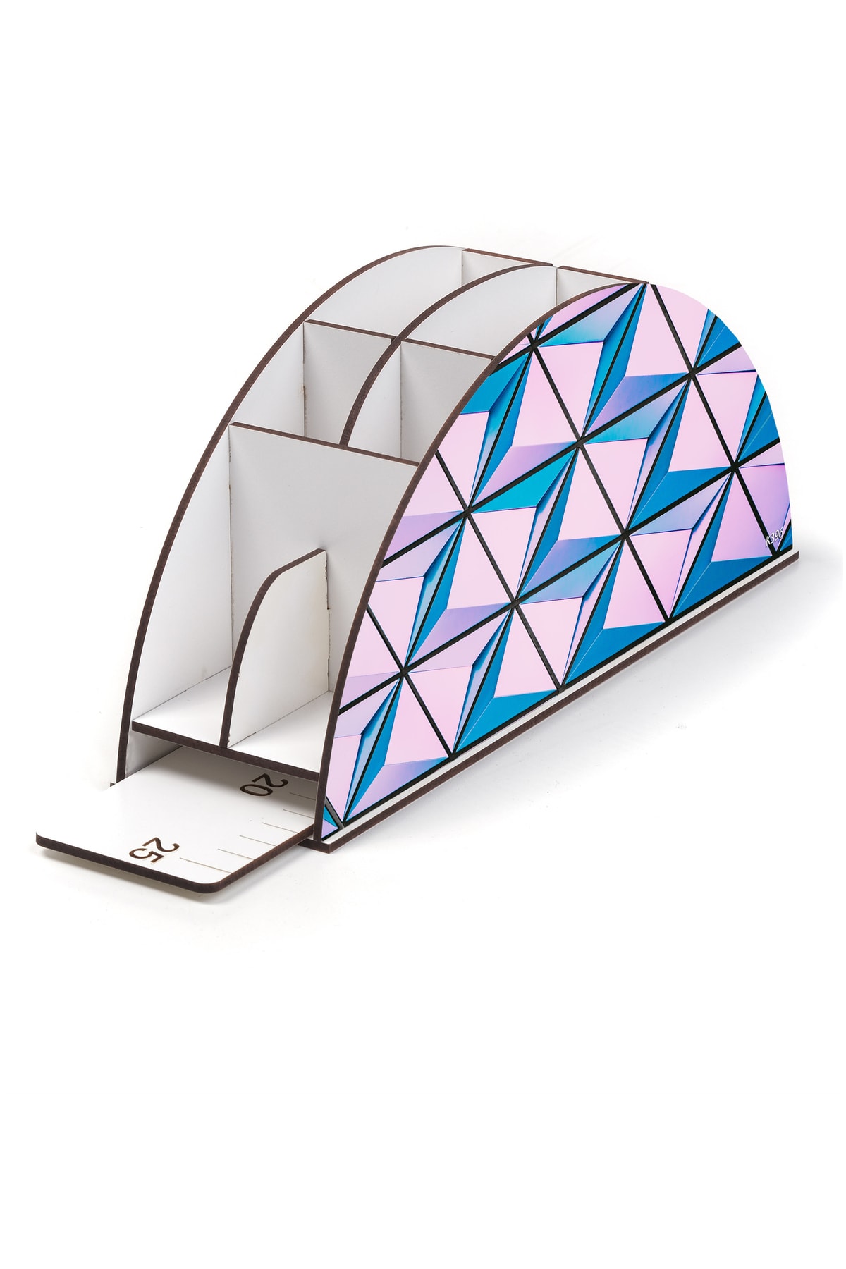 Ahşap Vip Student Seri Gökkuşağı Cetvelli Masaüstü Kalemlik Organizer Montajlı Kutulu