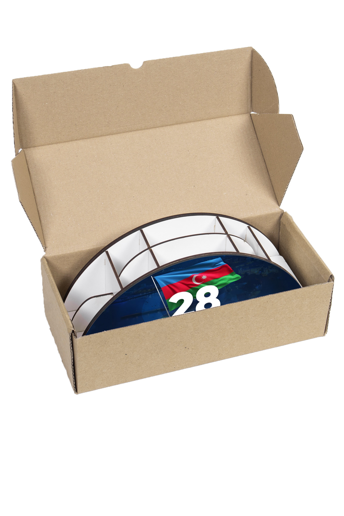 Ahşap VİP Türkiye-Azerbaycan Serisi Gökkuşağı Cetvelli Masaüstü Kalemlik Organizer Montajlı Kutulu