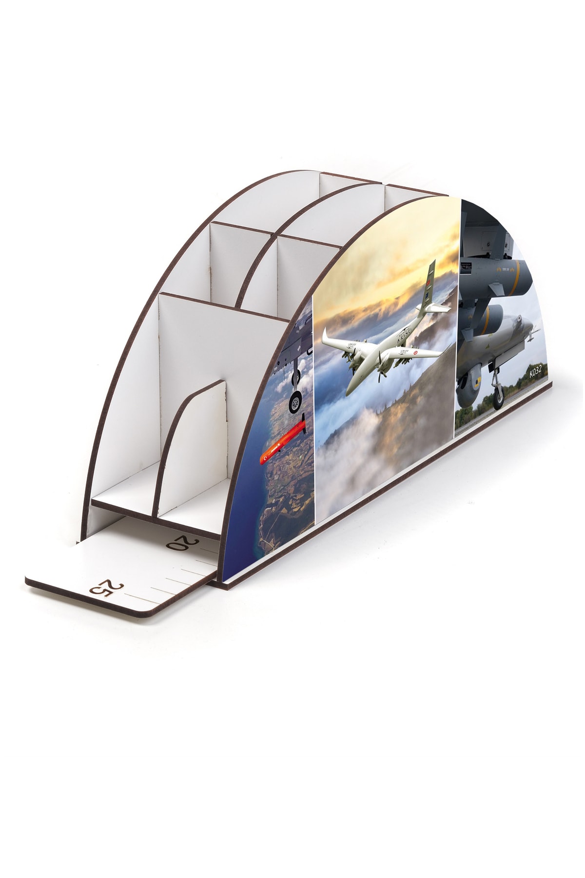 Ahşap Vip Uçak Serisi Gökkuşağı Cetvelli Masaüstü Kalemlik Organizer Montajlı Kutulu