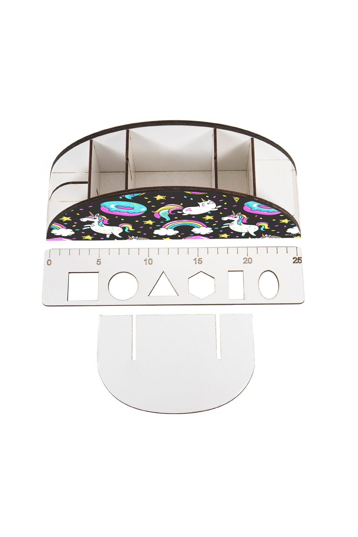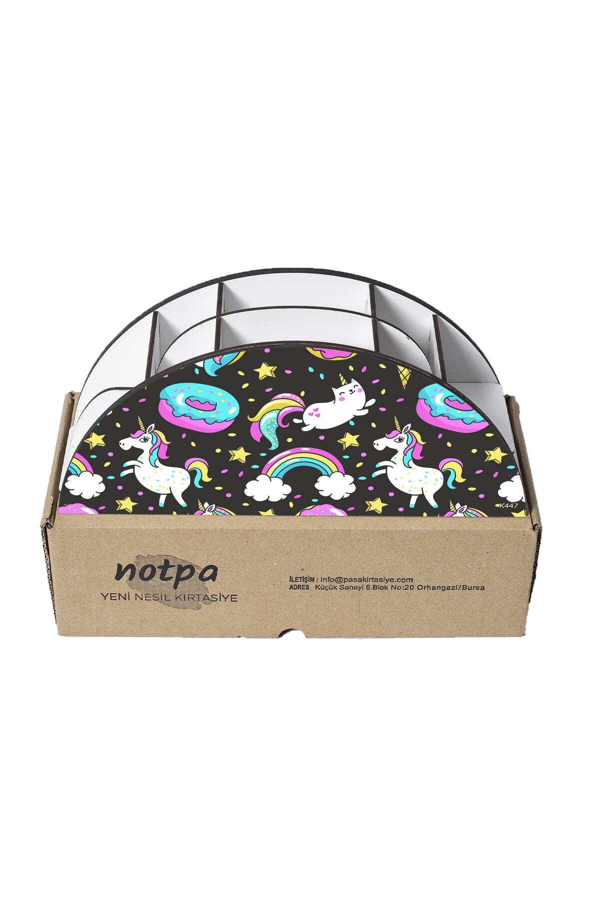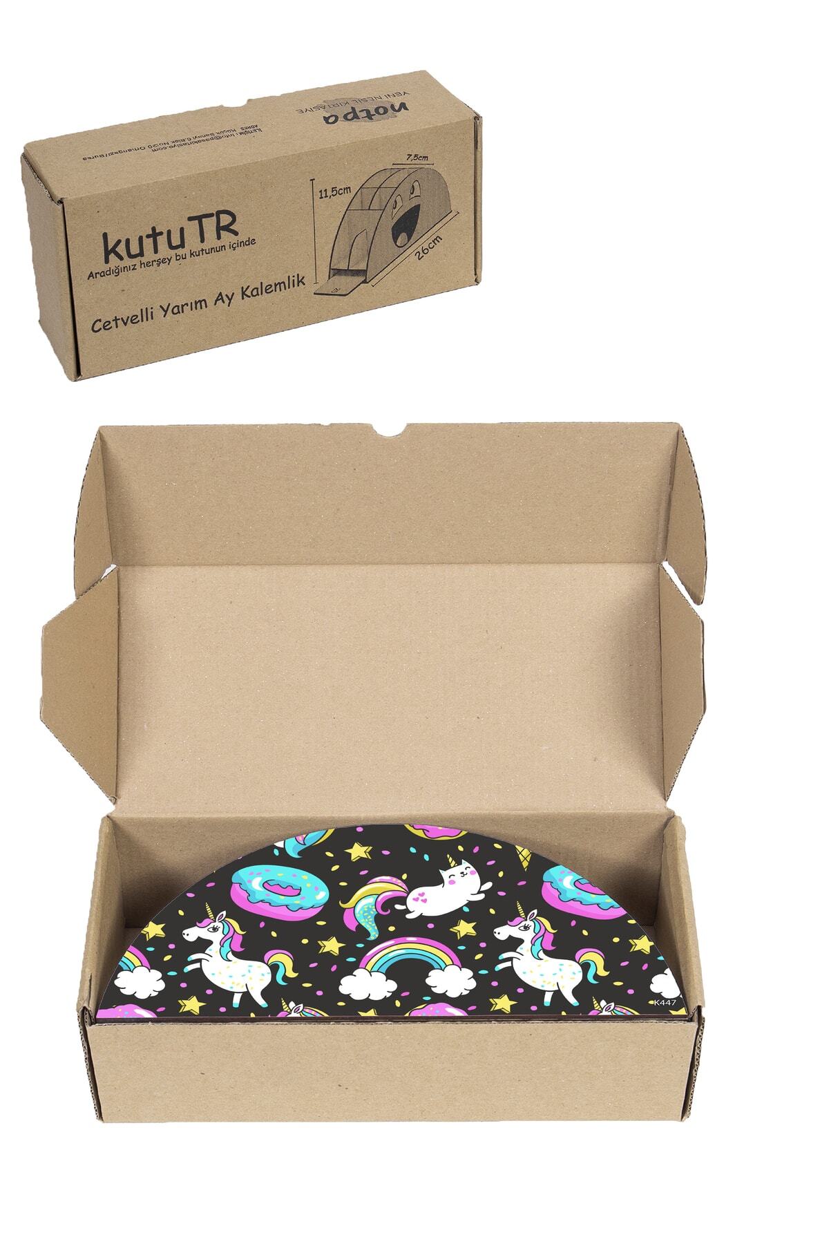 Ahşap Vip Unicornlar Model Gökkuşağı Cetvelli Masaüstü Kalemlik Organizer Montajlı Kutulu