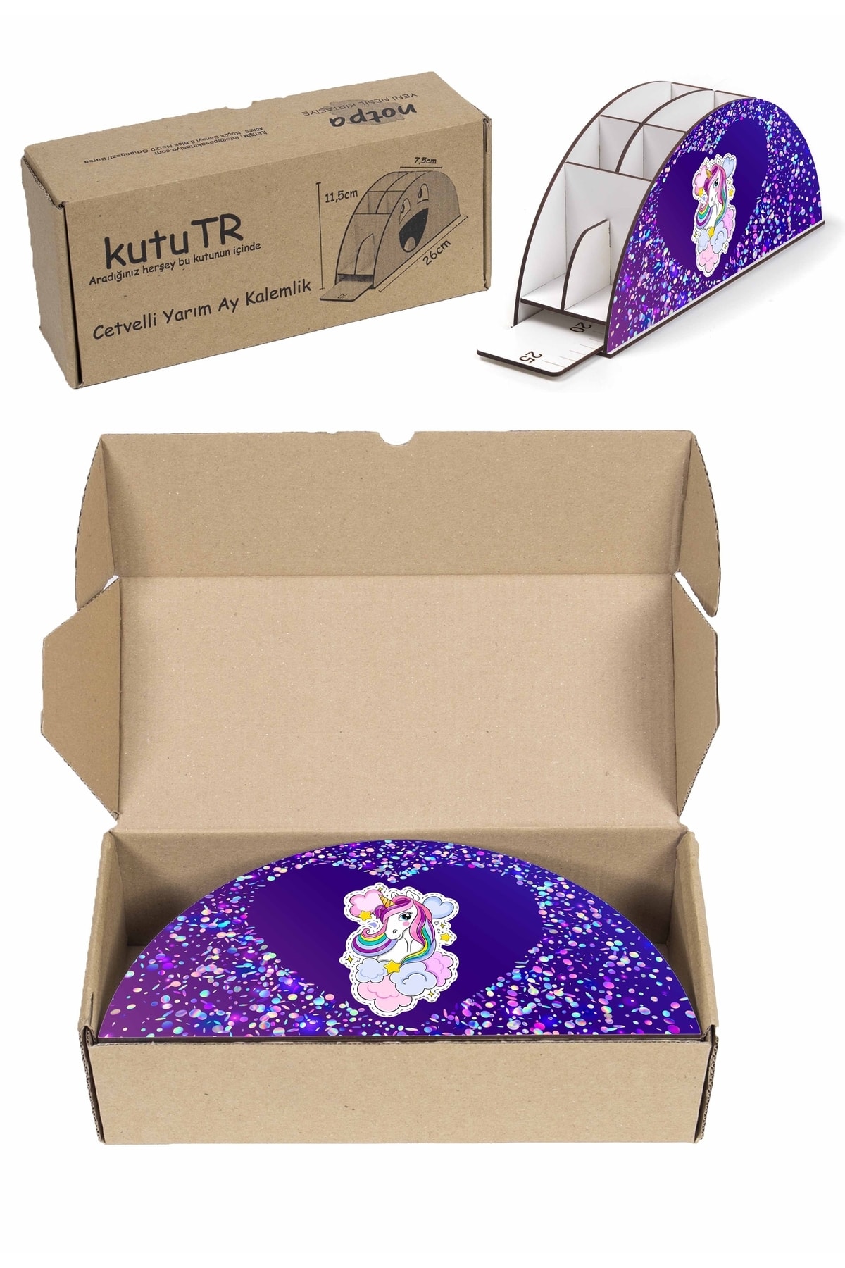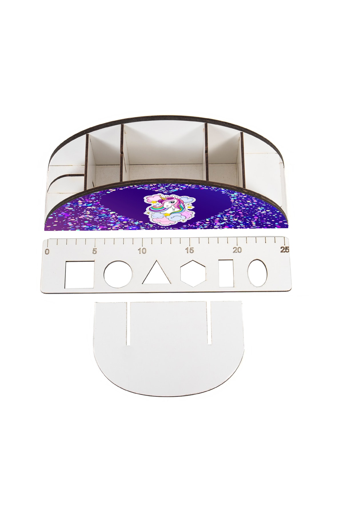 Ahşap Vip Unicornserisi Gökkuşağı Cetvelli Masaüstü Kalemlik Çocuklar Için Organizer Montajlı Kutulu