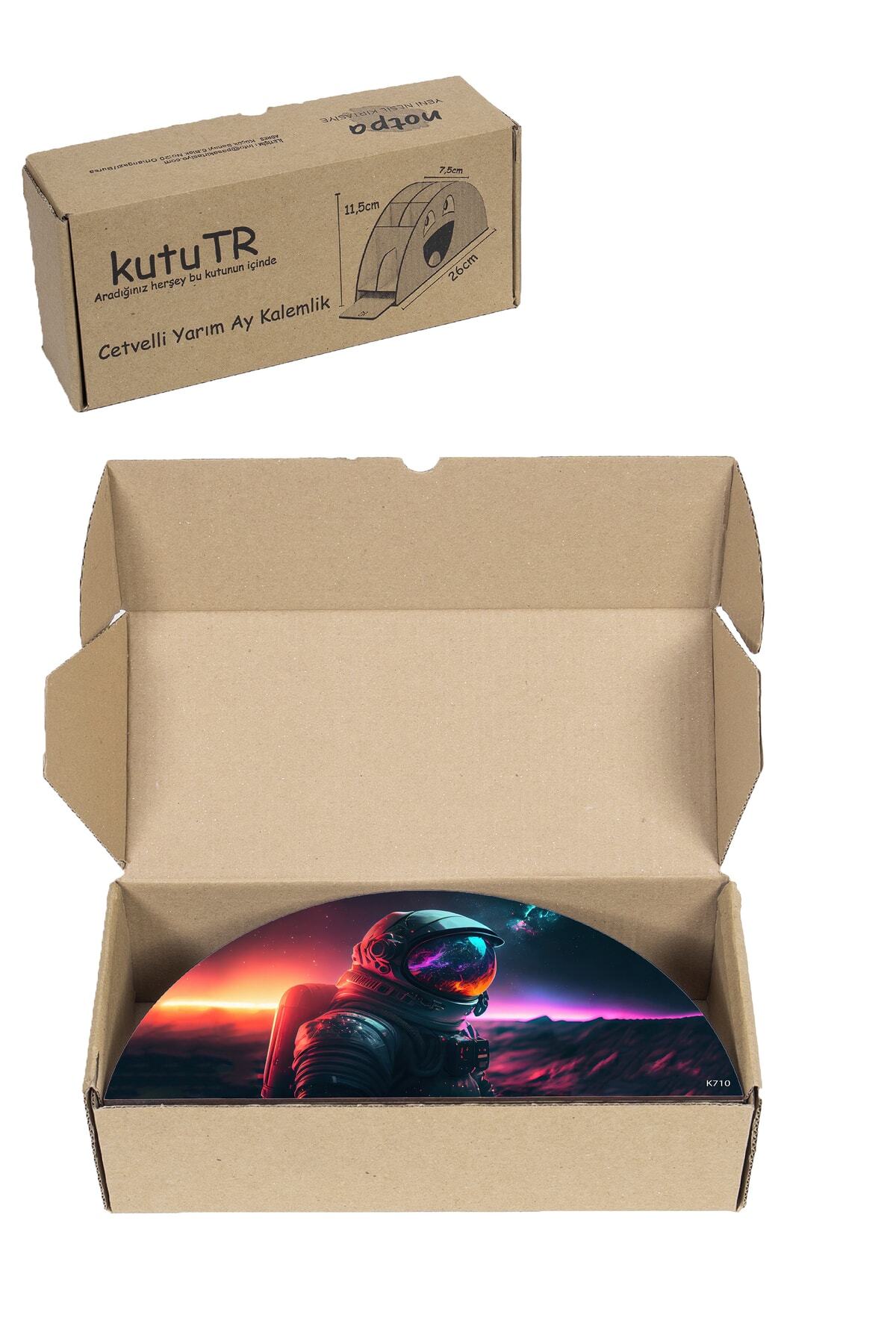 Ahşap Vip Uzay Serisi Gökkuşağı Cetvelli Masaüstü Kalemlik Organizer Montajlı Kutulu