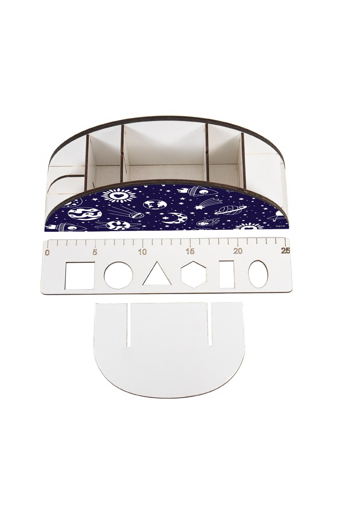 Ahşap Vip Uzay Serisi Model Gökkuşağı Cetvelli Masaüstü Kalemlik Organizer Montajlı Kutulu