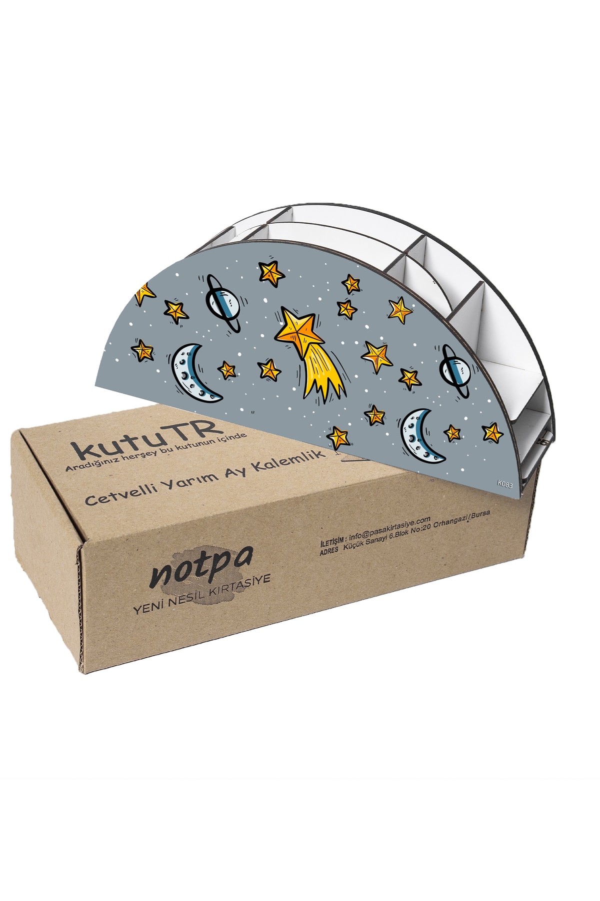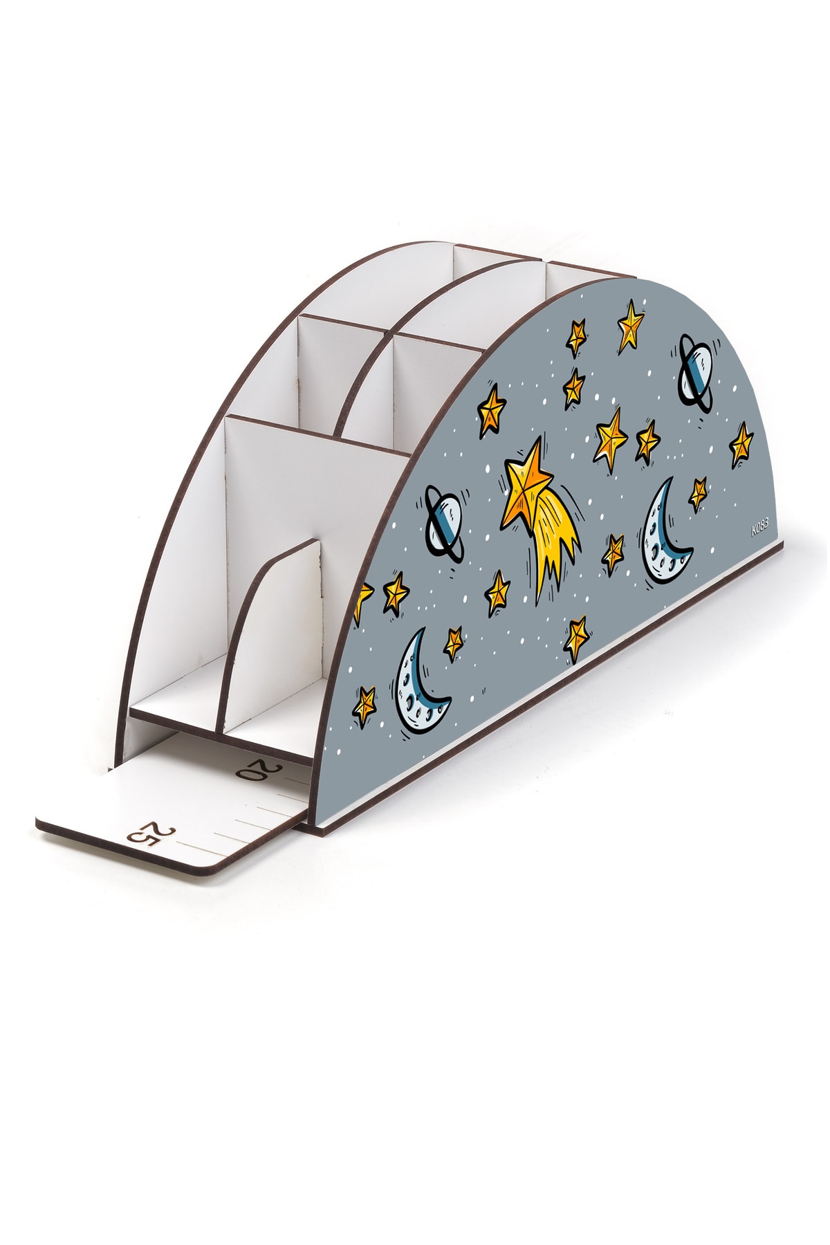 Ahşap Vip Uzay Serisi Model Gökkuşağı Cetvelli Masaüstü Kalemlik Organizer Montajlı Kutulu