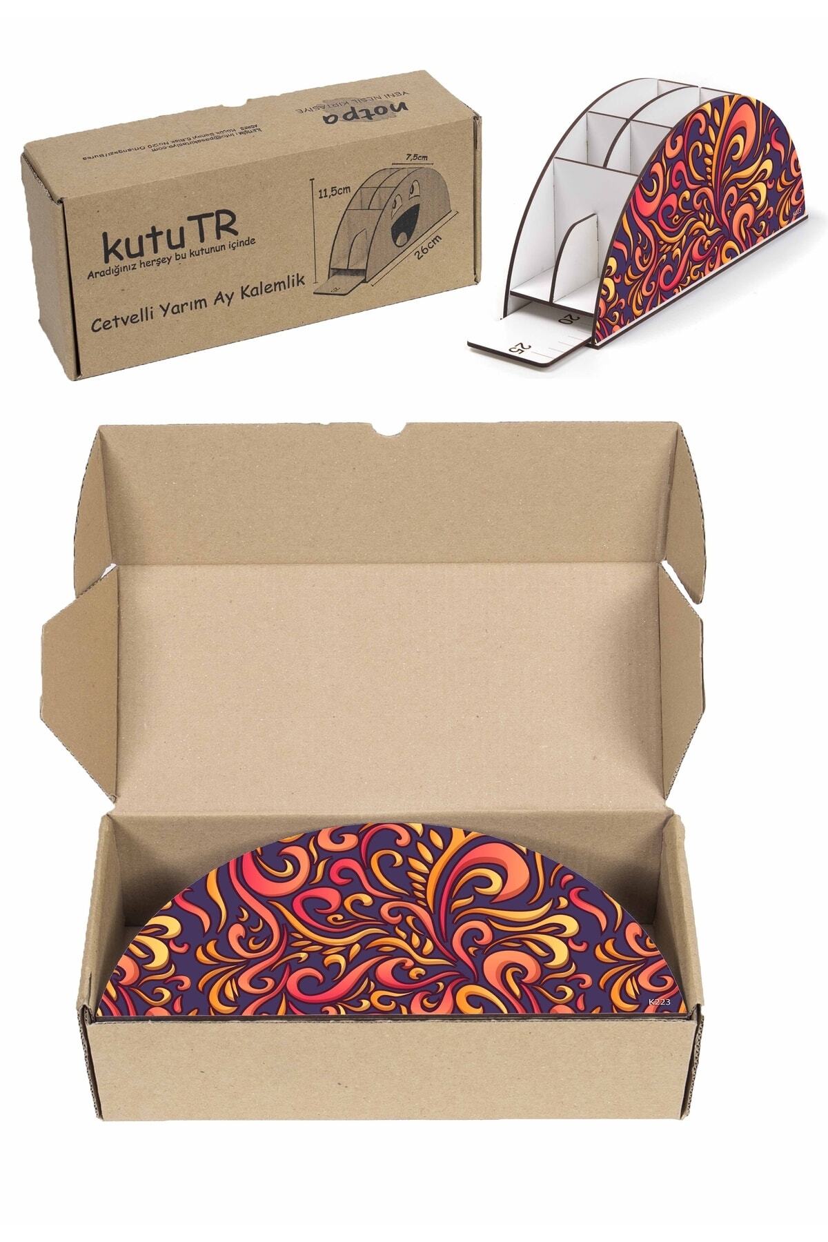 Ahşap Vip Yaprak Serisi Gökkuşağı Cetvelli Masaüstü Kalemlik Organizer Montajlı Kutulu