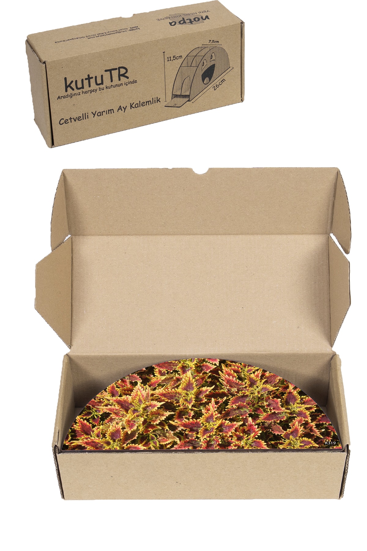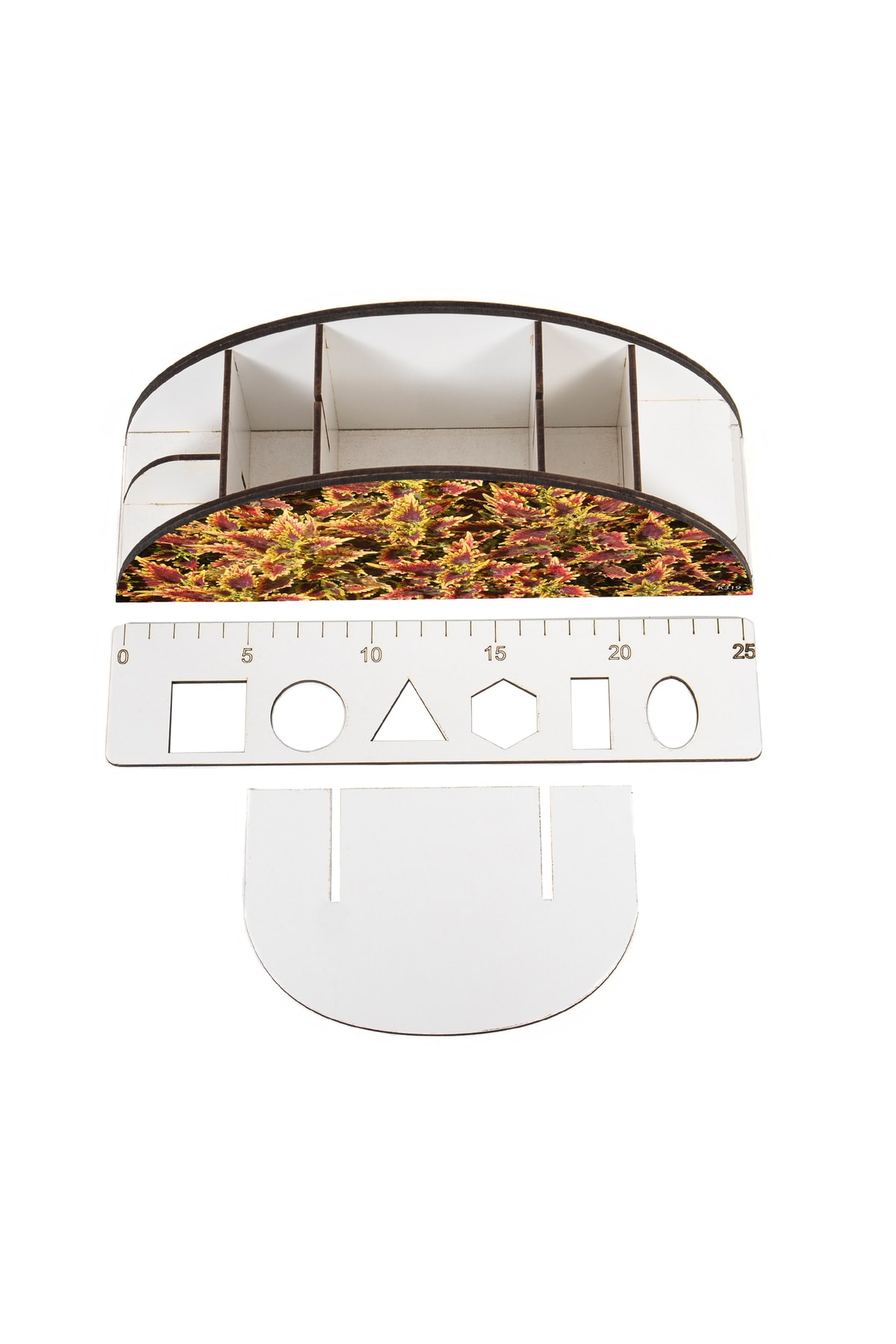 Ahşap Vip Yaprak Serisi Gökkuşağı Cetvelli Masaüstü Kalemlik Organizer Montajlı Kutulu