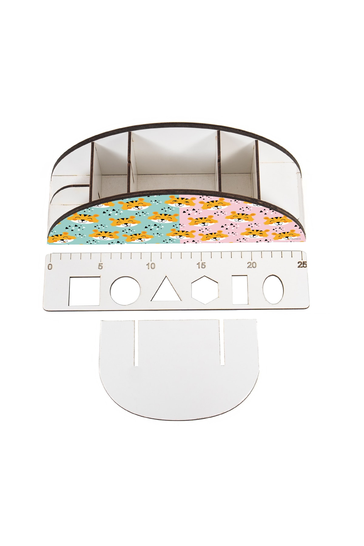 Ahşap Vip Yırtıcı Hayvanlar Gökkuşağı Cetvelli Masaüstü Kalemlik Organizer Montajlı Kutulu