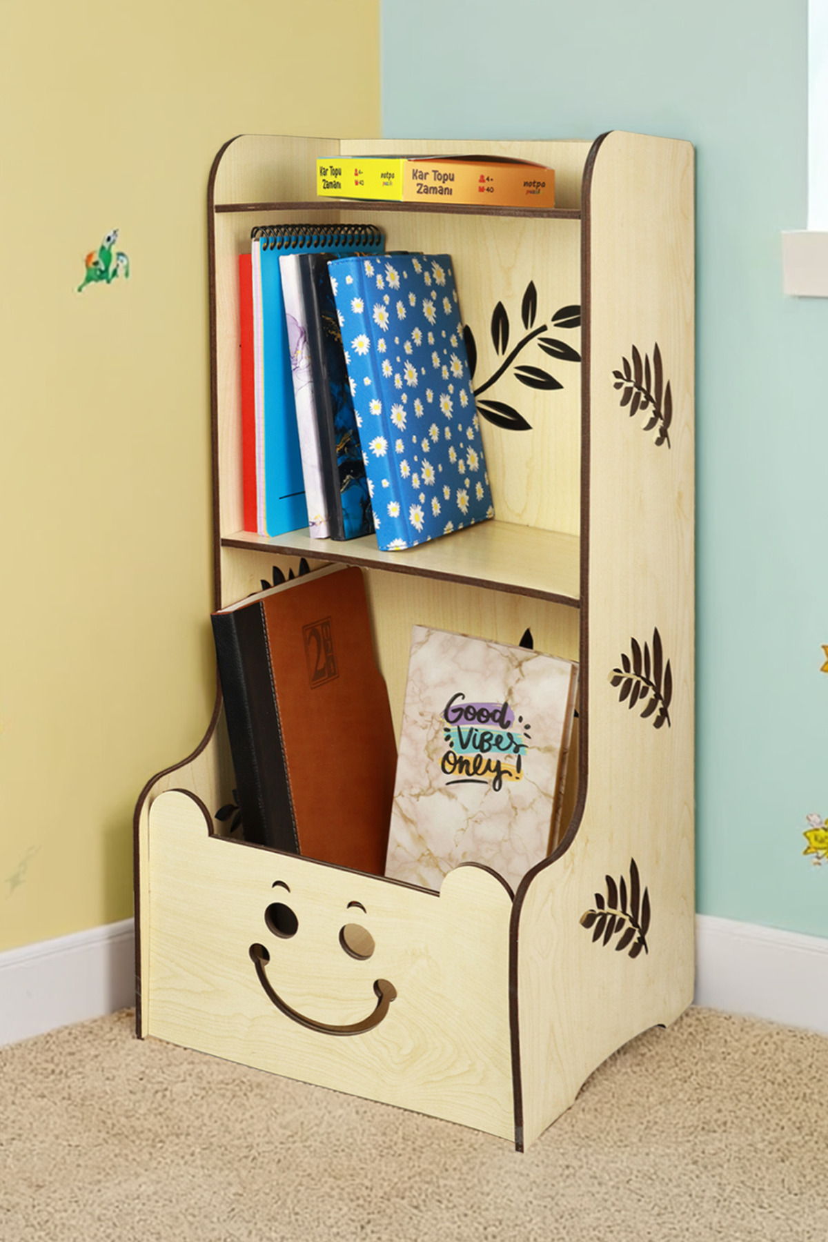 Akça MDF Yaprak Desenli Çocuk Kitaplık & Oyuncak Dolabı (60x27,5x27,5 cm)