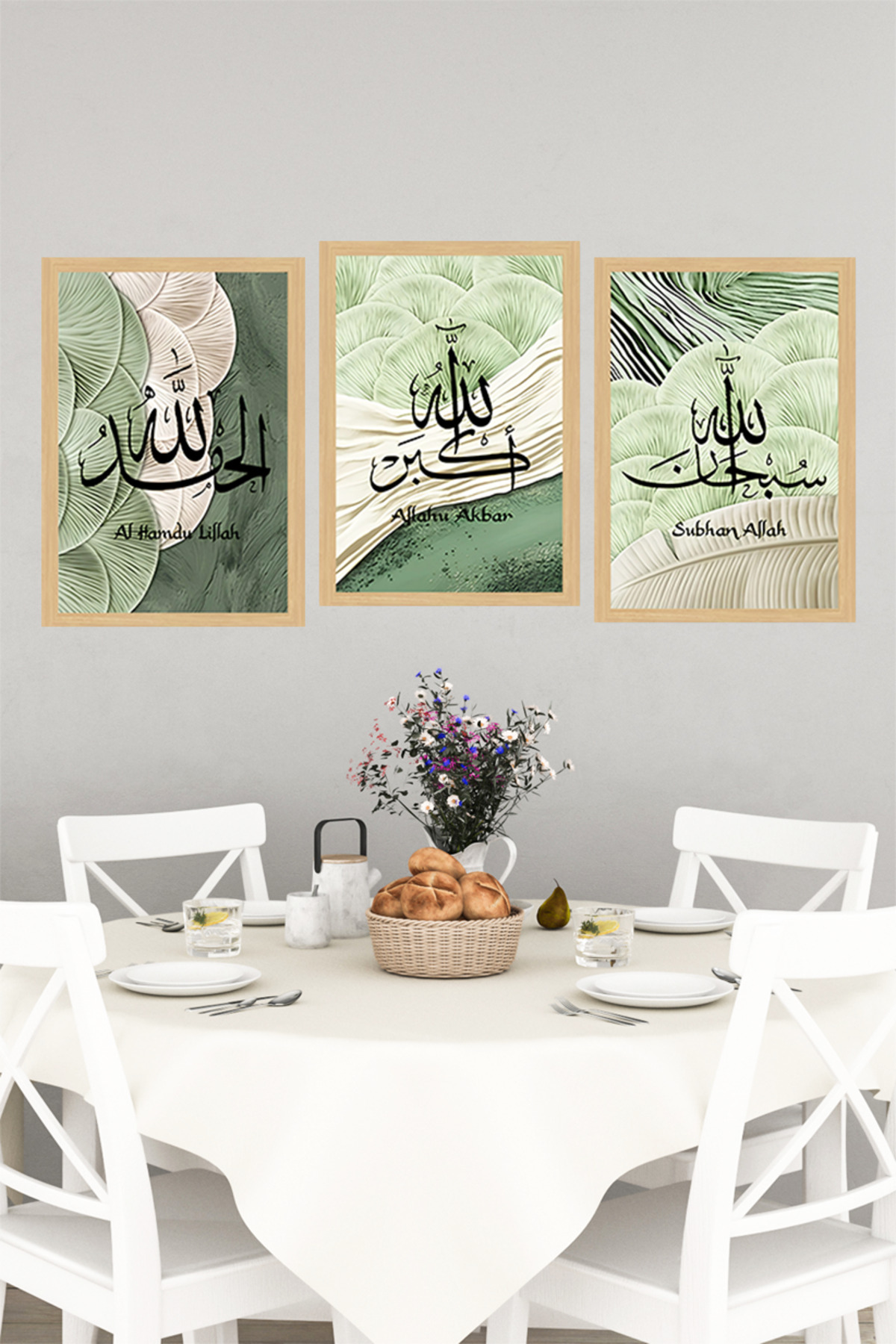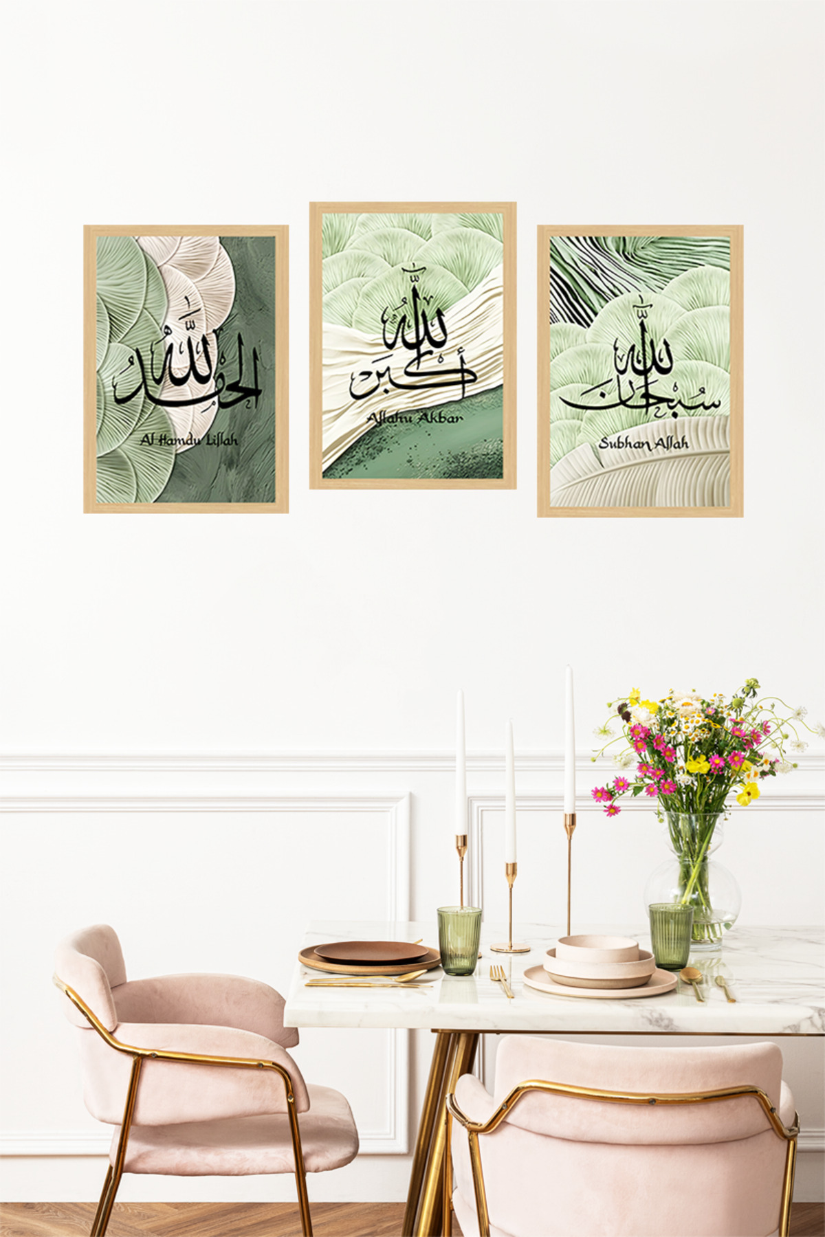 🌿 Al Hamdu Lillah – Allahu Akbar – Subhan Allah Yazılı 3’lü Çerçeve Görünümlü Tablo Seti🌟 CRVS1077