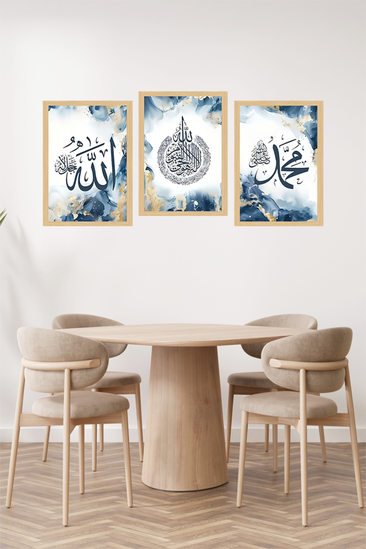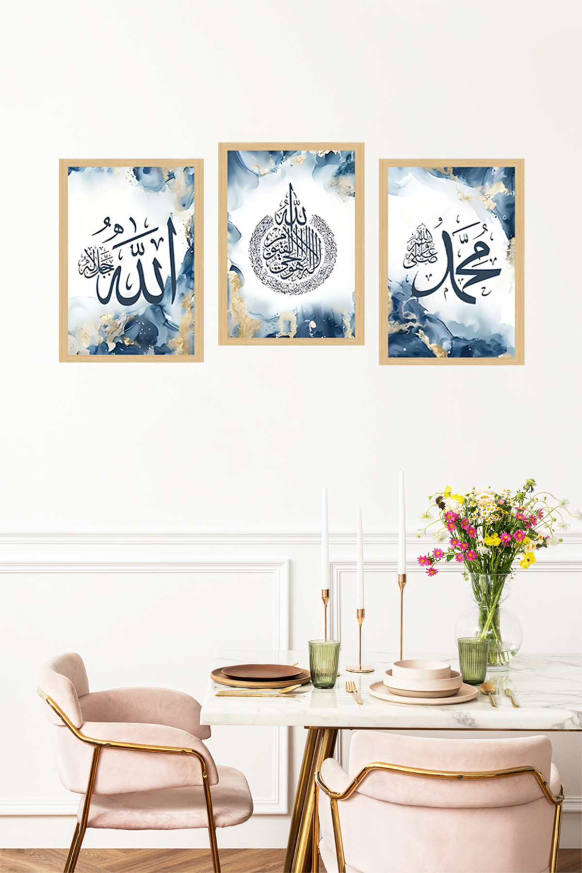 🕋 Allah - Ayetel Kürsi - Muhammed Yazılı 3’lü İslami Tablo Seti Çerçevesiz 🌟 CRVS1068