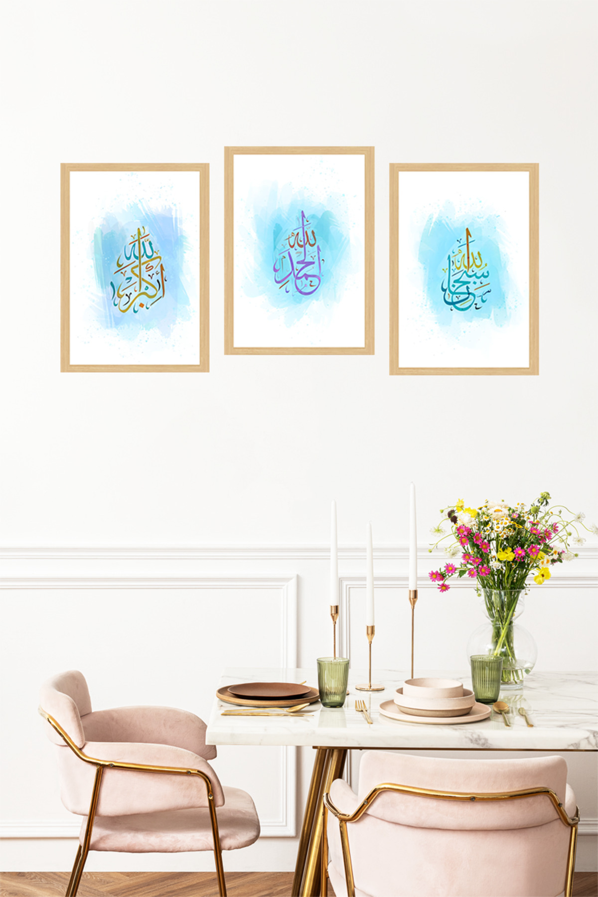✨ Allah Yazılı Mavi Tonlarda 3’lü Tablo Seti ✨(Çerçeve Efektli)🌟 CRVS1218