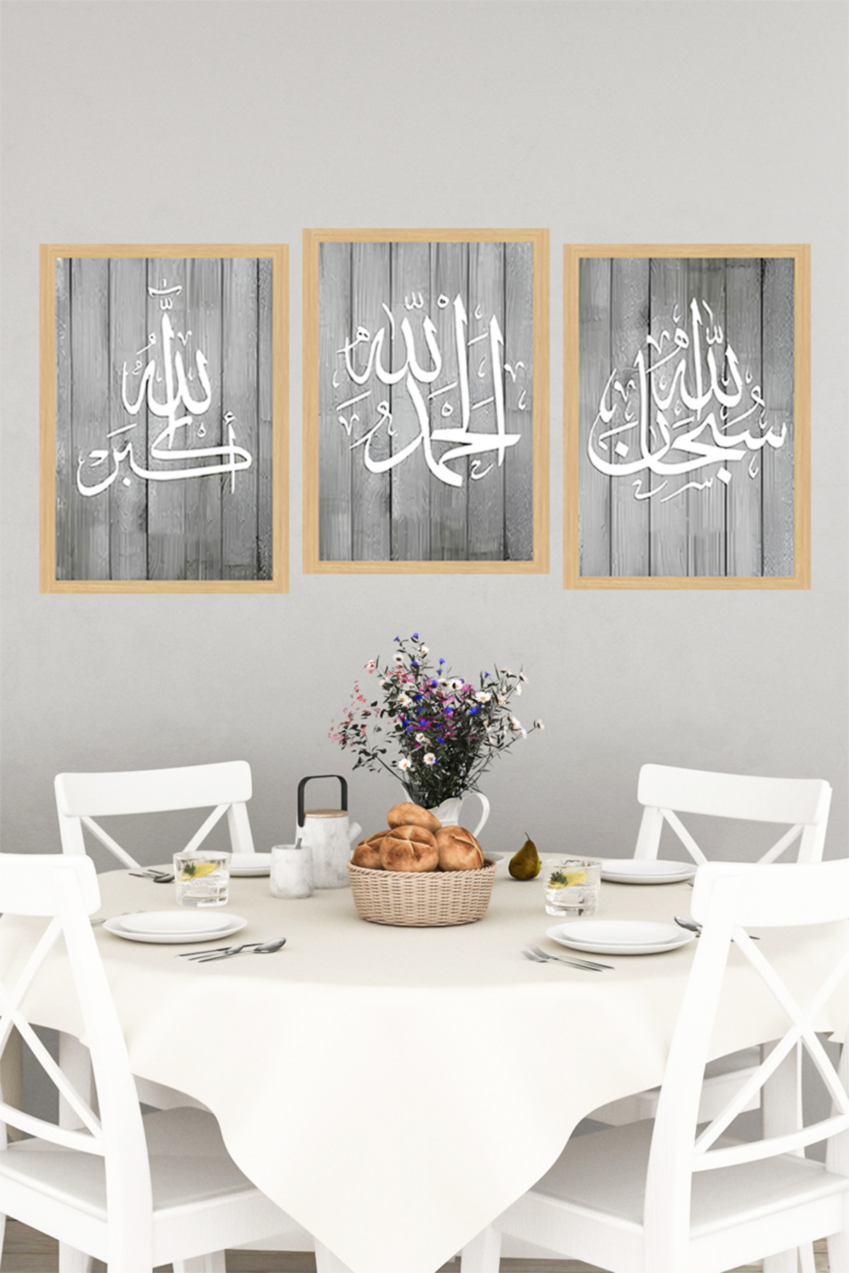 🖼️ Allah'ı Anmanın Zarif Hâli – 3'lü Çerçeve Görünümlü Tablo Seti🌙 CRVS1236