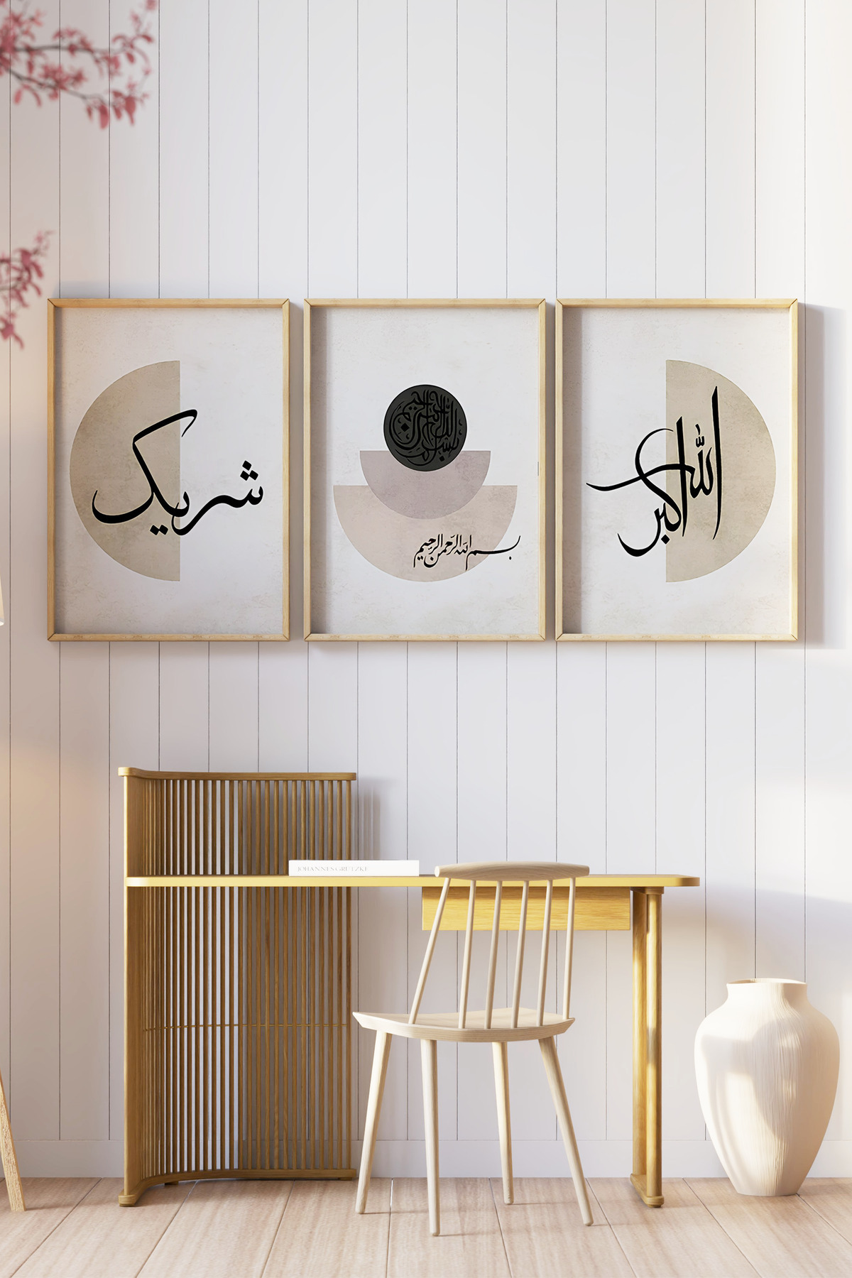 🕋 Allahu Ekber – Bismillahirrahmanirrahim – Şerik Yazılı 3’lü Hat Sanatı Tablo Seti 🕋CRV1075
